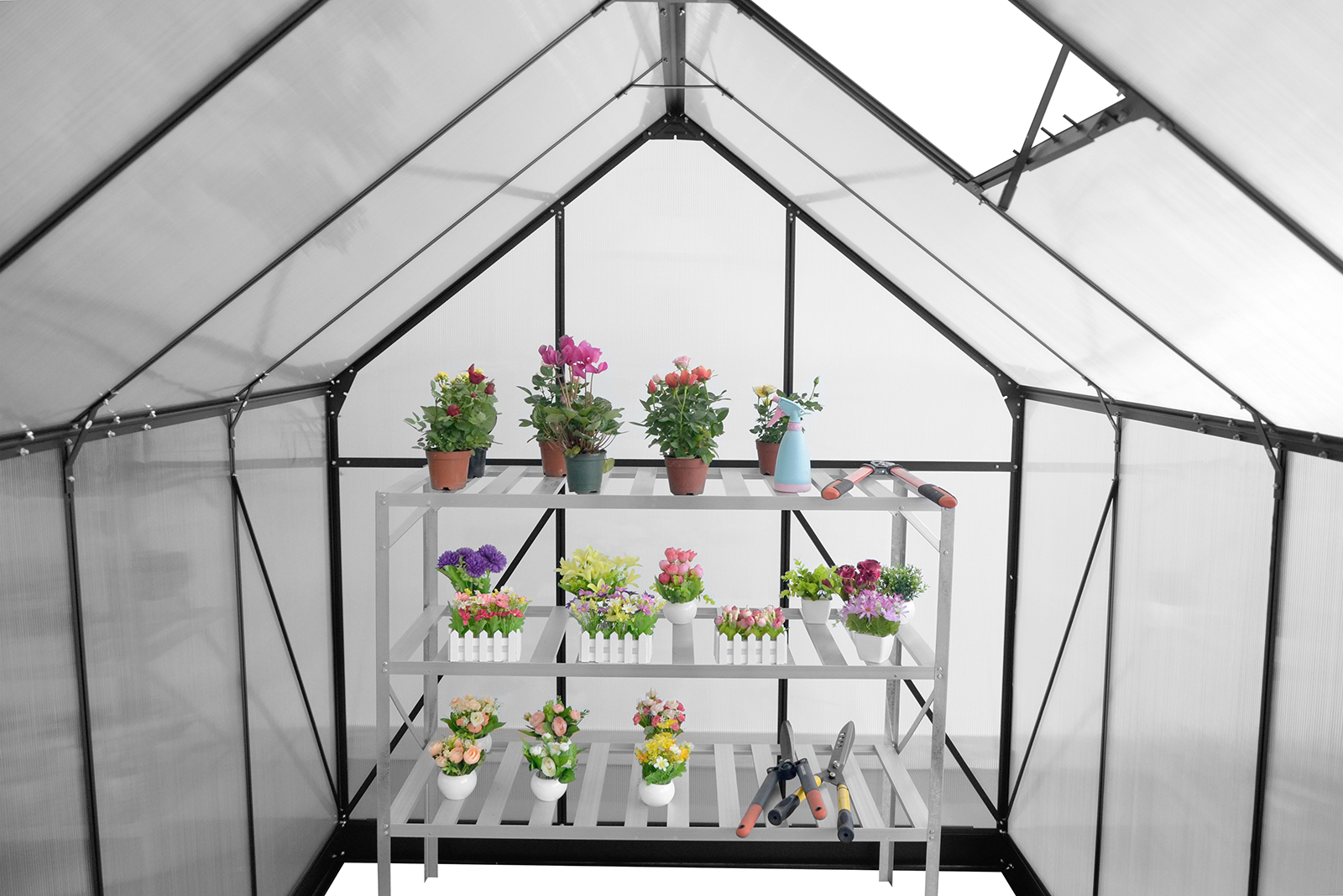 Садовая теплица изготовлена из алюминия и бесцветного клеточного поликарбоната толщиной 4 мм, который устойчив к ультрафиолетовому ультрафиолетовому ультрафиолетору (в 200 раз больше, чем стекло). Используемый материал характеризуется исключительной долговечностью и высоким качеством, что обеспечивает его долгосрочное пожелтение и сопротивление дробления - в отличие от низкокачественного поликарбоната, что может быть разрушено через несколько месяцев. Спросите своего продавца о предлагаемой безопасности и качестве материала, чтобы сознательно выбрать продукт, который будет соответствовать вашим ожиданиям. Конструкция стабильная и устойчивая к сильному ветру и снегу. Модель 2023 года содержит дополнительные подкрепления для каждой поликарбонатной пластины, которая будет наносить пластины на дует внутрь. Опекуна на вершине имеет специальные подкрепления для лигирования, например, томатные ветви. Поликарбонатные пластины вставляются между профилями, что также защищает их от прозрачного ветра. Окно - закрывает его, когда температура падает. Уровень открытия окна регулируется автоматически в зависимости от температуры. Новичок не требует мощности, он поступает в результате повышения температуры в диапазоне 22-28 градусов по Цельсию. Защита от контакта с землей и позволяет устанавливать стеклянную установку непосредственно на почву. Фонд оснащен якорями, которые предотвратят теплицу предотвратить ветер. При создании бетонной основы теплица также должна быть установлена на аксессуарной основе, которая будет разделена высотой 12 -сантиметровой бетонной подложки от поликарбонатных деталей