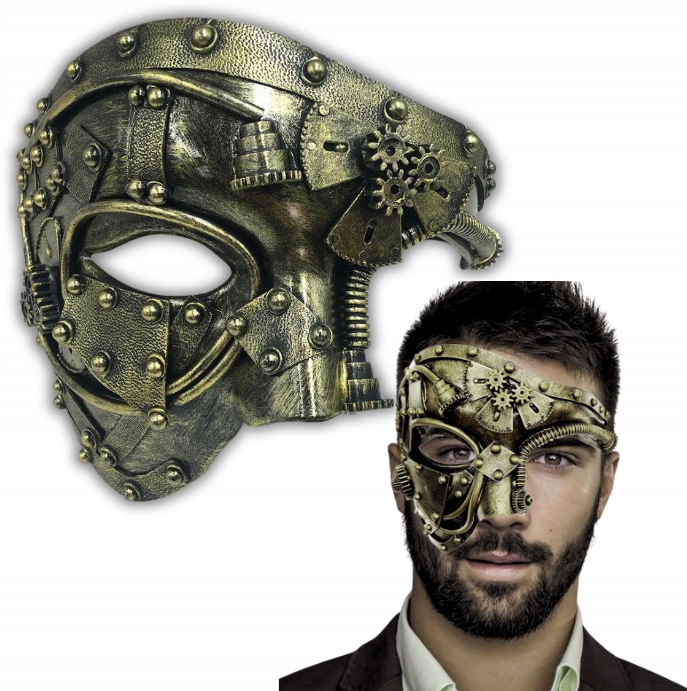⭐Маска стимпанк полна таких деталей, как маленькие винтики, резьба и шестерни. Эти элементы стратегически расположены так, что маска представляет собой функциональное механическое устройство.