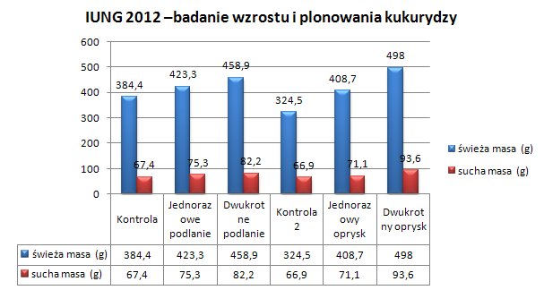 ИУНГ 2012 г. - исследование роста и урожайности кукурузы с использованием опыта в вегетации, дифференцированное по количеству (1 и 2 обработки) и способу применения Суперплона К (опрыскивание и полив).