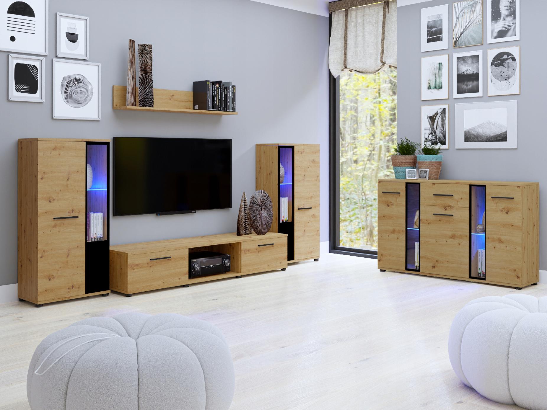 Стінка для вітальні з дубовим комодом ручної роботи CUBE