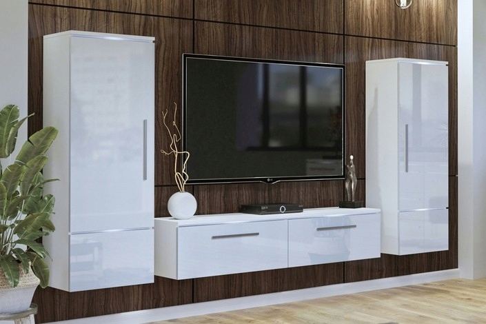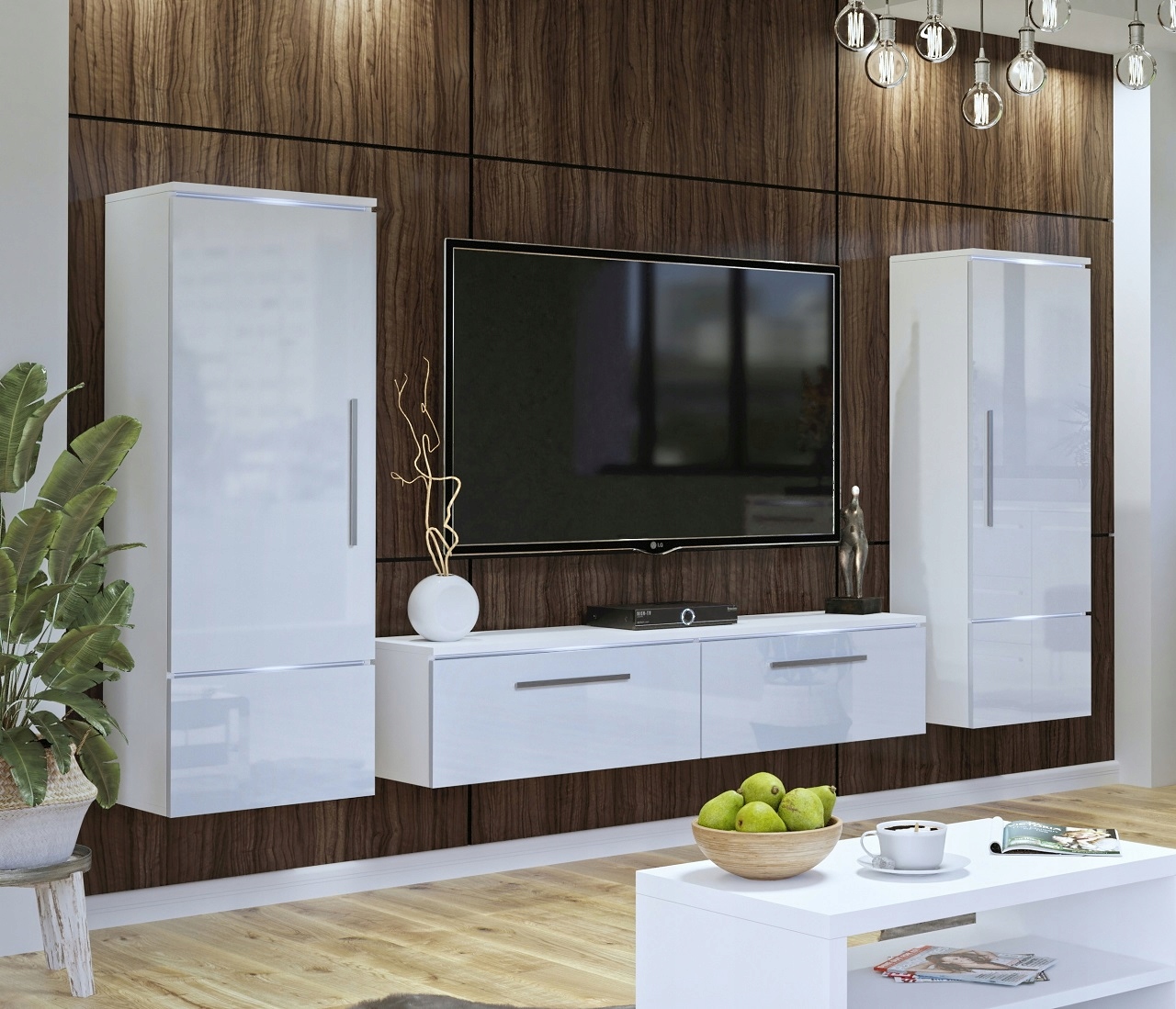 Секция для гостиной с белым глянцевым комодом под телевизор AMBER 09