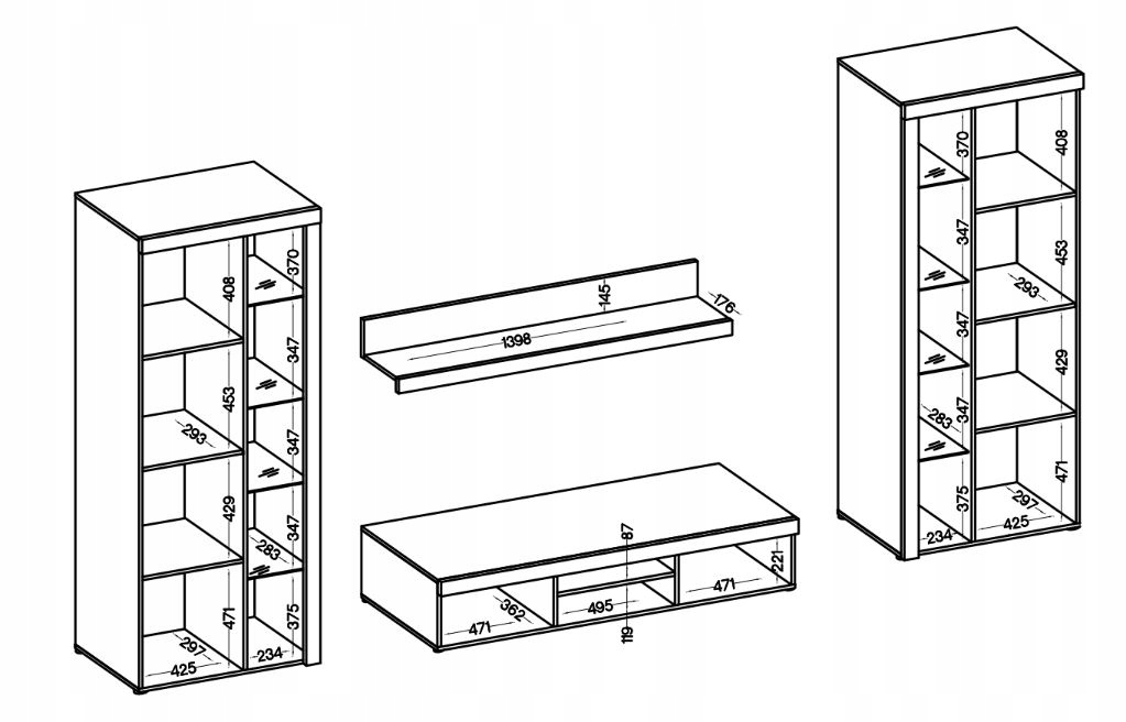 - Полка: b> 140 см. ширина x 20,4 см, высота x 19,1 см, глубина