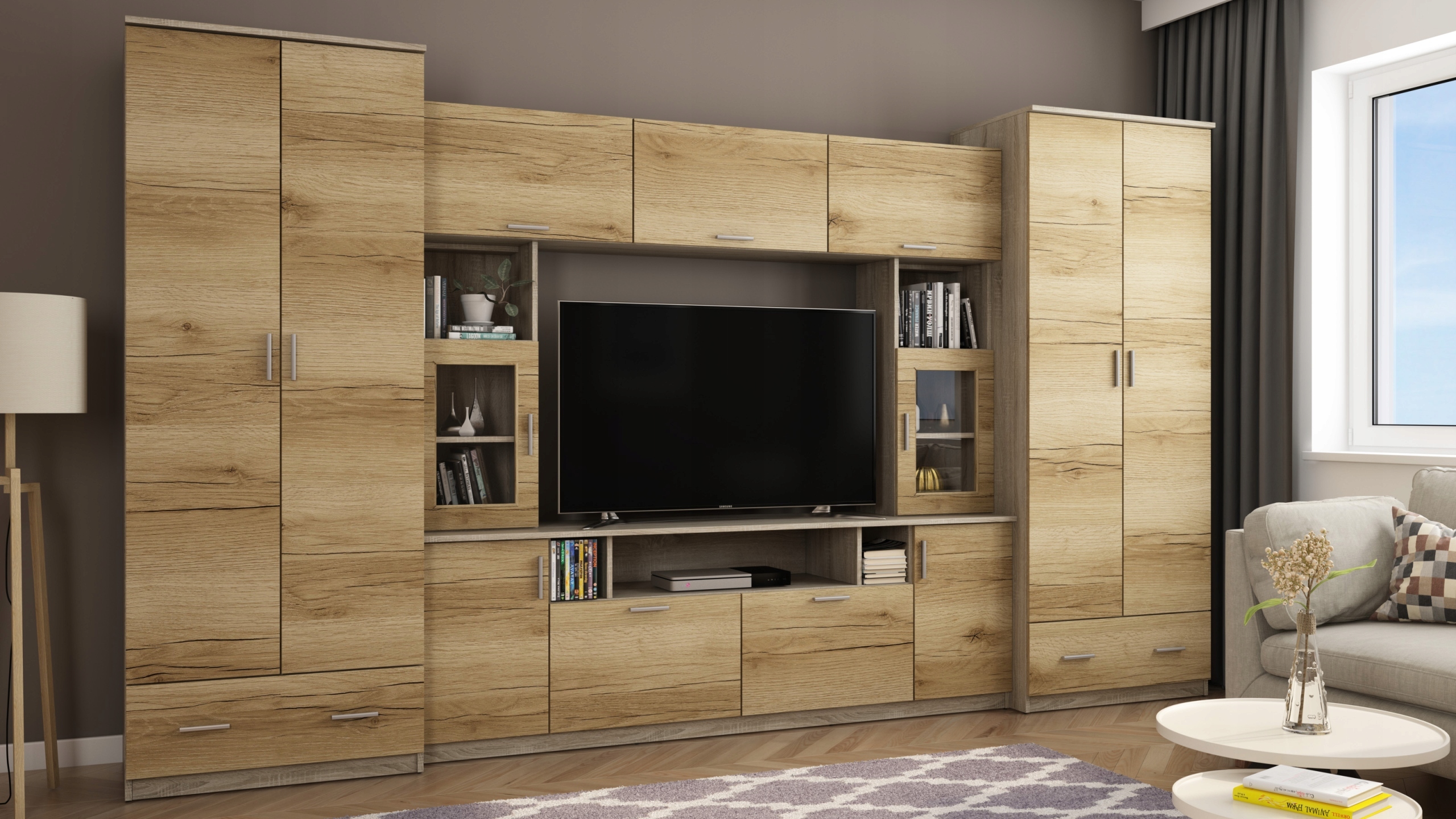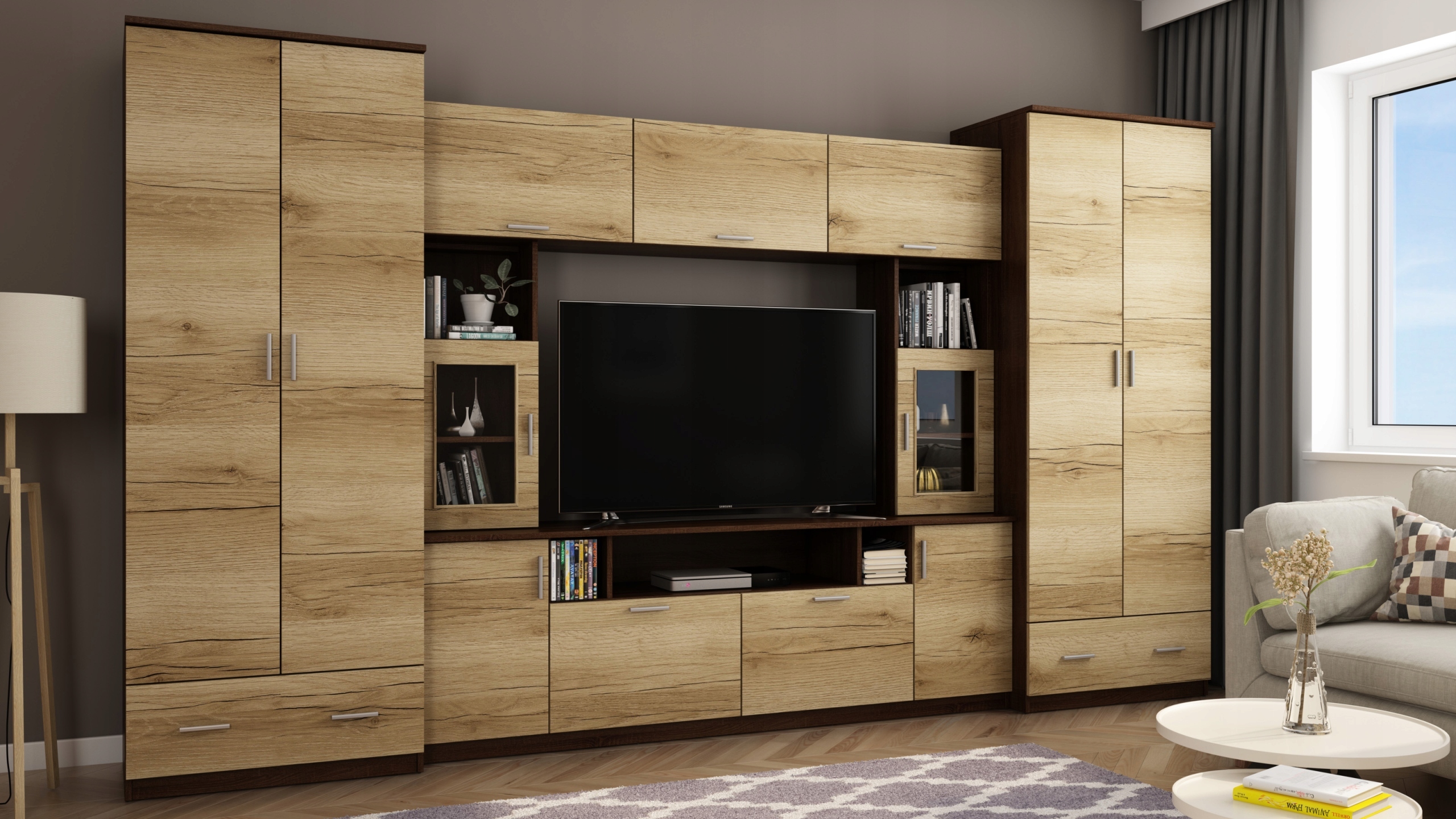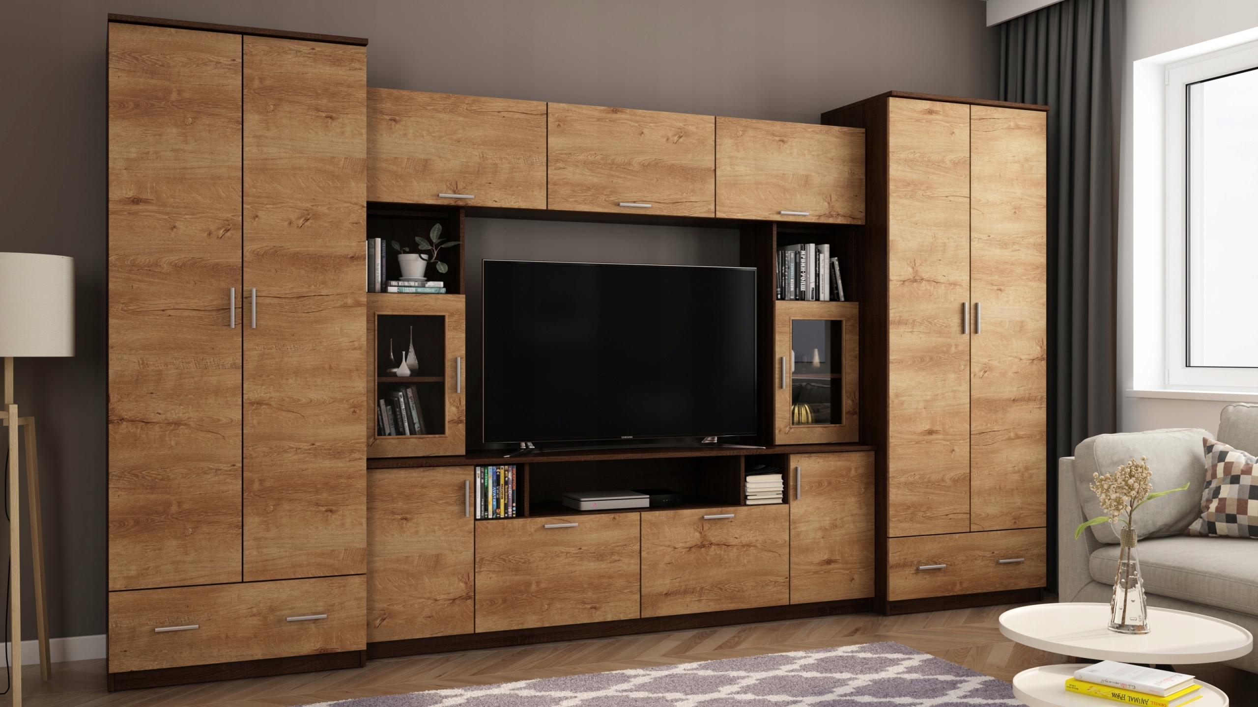 Вам нужен современный, просторный и, прежде всего, чрезвычайно прочный настенный шкаф? Наш Комплект гостиной подойдет❗️