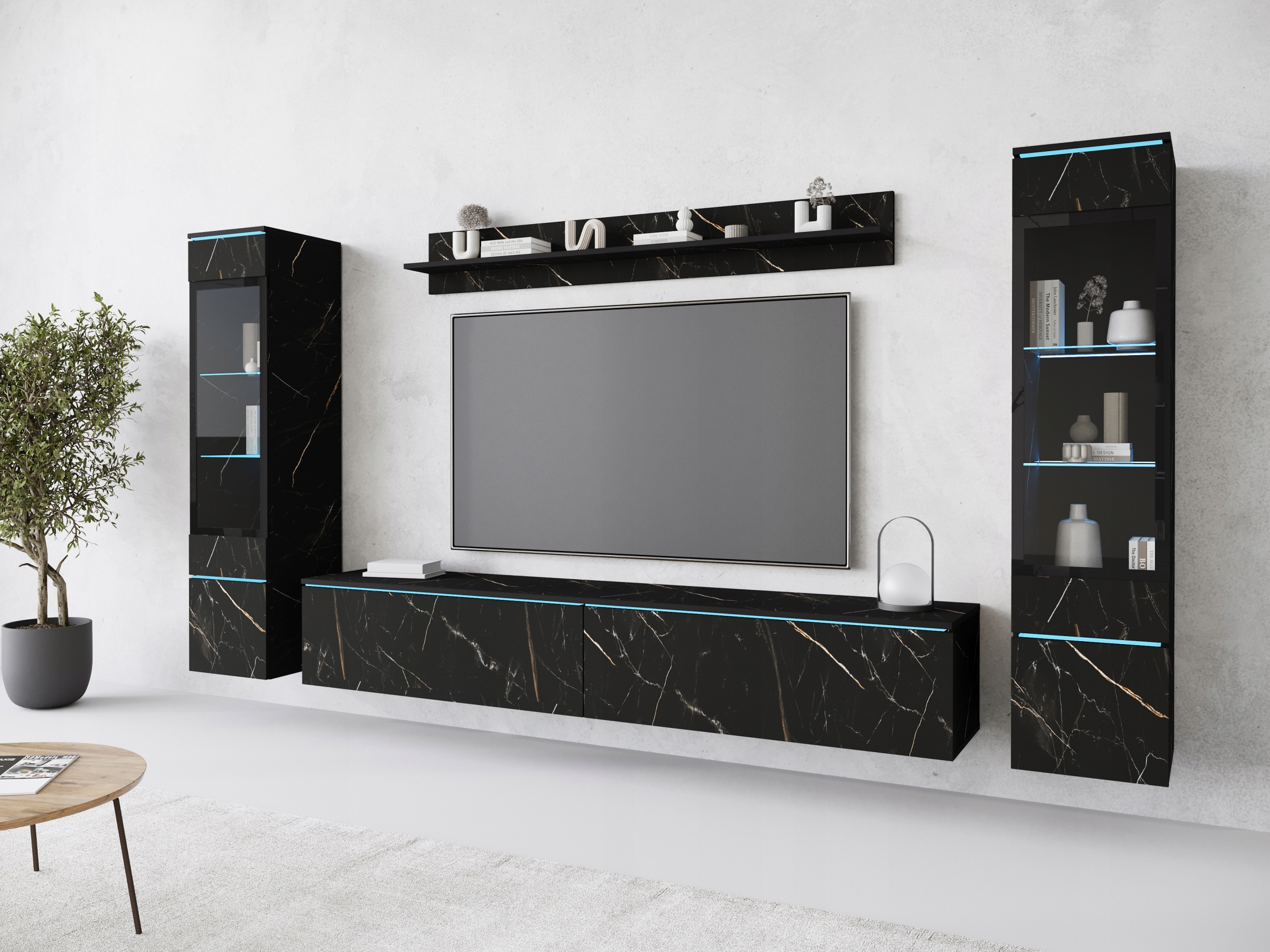 Vera II — это современная мебель для гостиной. Стеклянные элементымогут быть подсвечены светодиодной подсветкой, что сделает шкаф еще привлекательнее и создаст идеальный климат в помещении. Вы сами решаете, хотите ли вы повесить или расставить мебель.