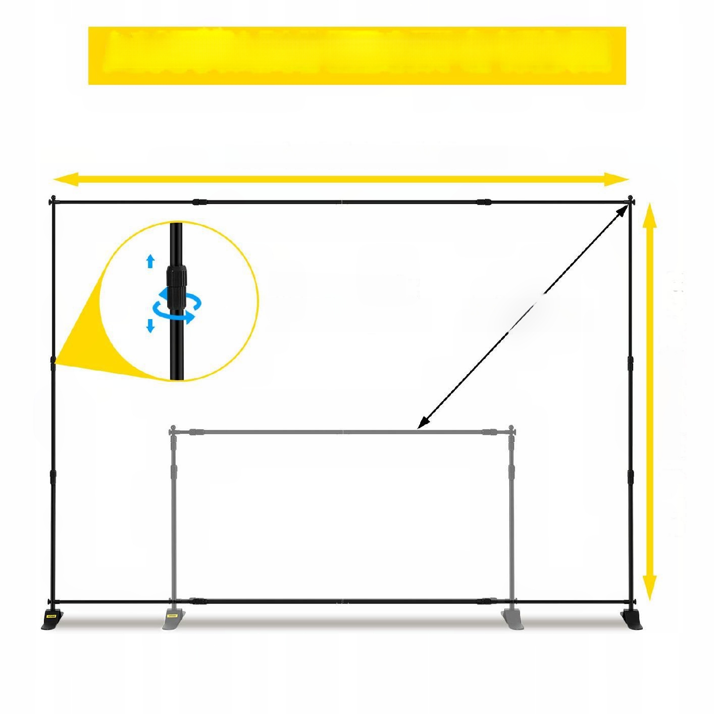 - ✅ Регулируемый размер: Регулируемая ширина от 170 см до 300 см и высота от 110 см до 240 см, что позволяет соответствовать различным размерам баннеров.