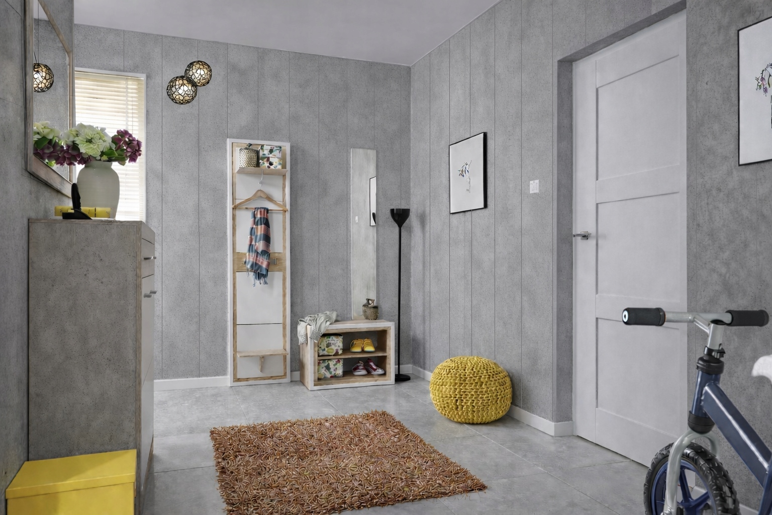 Изготовлен из высококачественного МДФ, покрыт прочной декоративной пленкой оттенка бетон, прекрасно сочетается с декоративными панелями. из коллекции Grande Ritorno, а также с современными, лофтовыми, индустриальными интерьерами, гарантирующими эстетичный внешний вид на долгие годы.