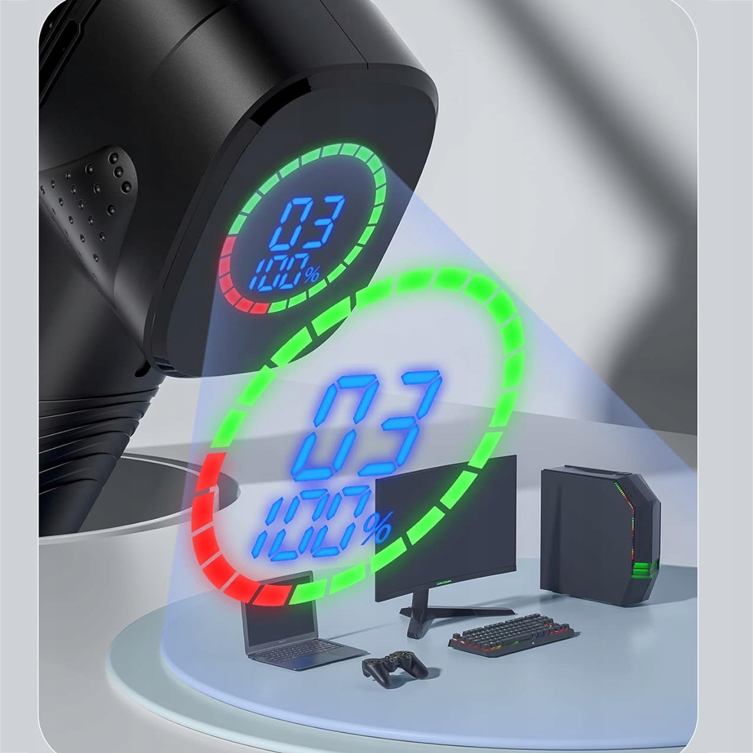 💻 【Большой и четкий светодиодный экран】: Компактный компьютерный пылесос оснащен светодиодным дисплеем высокого разрешения, поэтому вы можете сразу увидеть оставшийся процент мощности и поток ветра. Вы можете переключать 3 режима воздушного потока в зависимости от ваших потребностей в уборке, поэтому пыли негде оставаться. Нажмите и удерживайте кнопку в течение 3 секунд, чтобы включить/выключить, нажмите кнопку, чтобы изменить скорость.