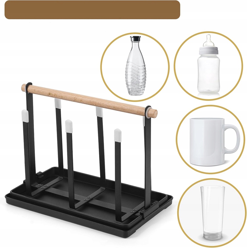 🥛🥛 Вертикальная конструкция под углом 90°: Сушилка для бутылок с вертикальной конструкцией под углом 90° позволяет быстро хранить и упорядочивать одновременно 6 стеклянных бутылок, бутылок и чашек различных форм и размеров без риска опрокидывания.