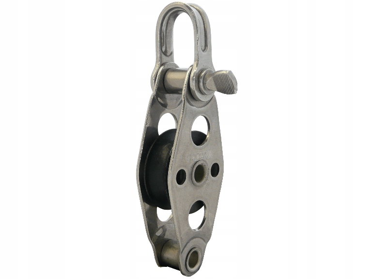 Блок одинарный для стальных канатов из нержавеющей стали с крюком, скобой и прочным пластиковым роликом.