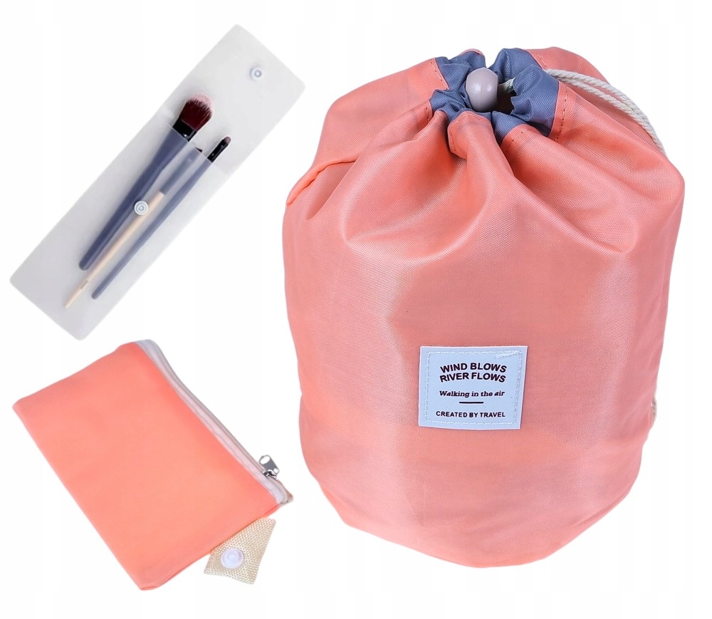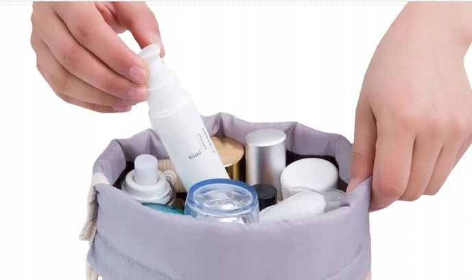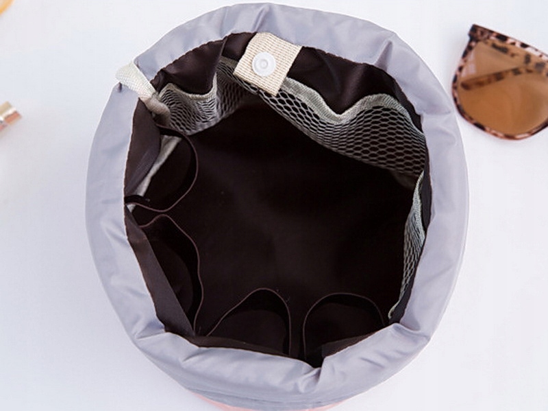 - Внутри мешка есть три кармана и четыре ластика, которые позволяют вам стабильно размещать контейнеры с косметикой