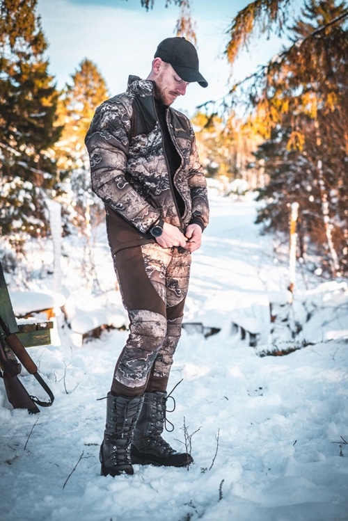 Использование эластичных вставок из контрастной ткани, эластичных манжет и регулировки талии шнурком позволяет куртке идеально облегать фигуру. Функциональные карманы обеспечивают удобное хранение необходимых аксессуаров на охоте.