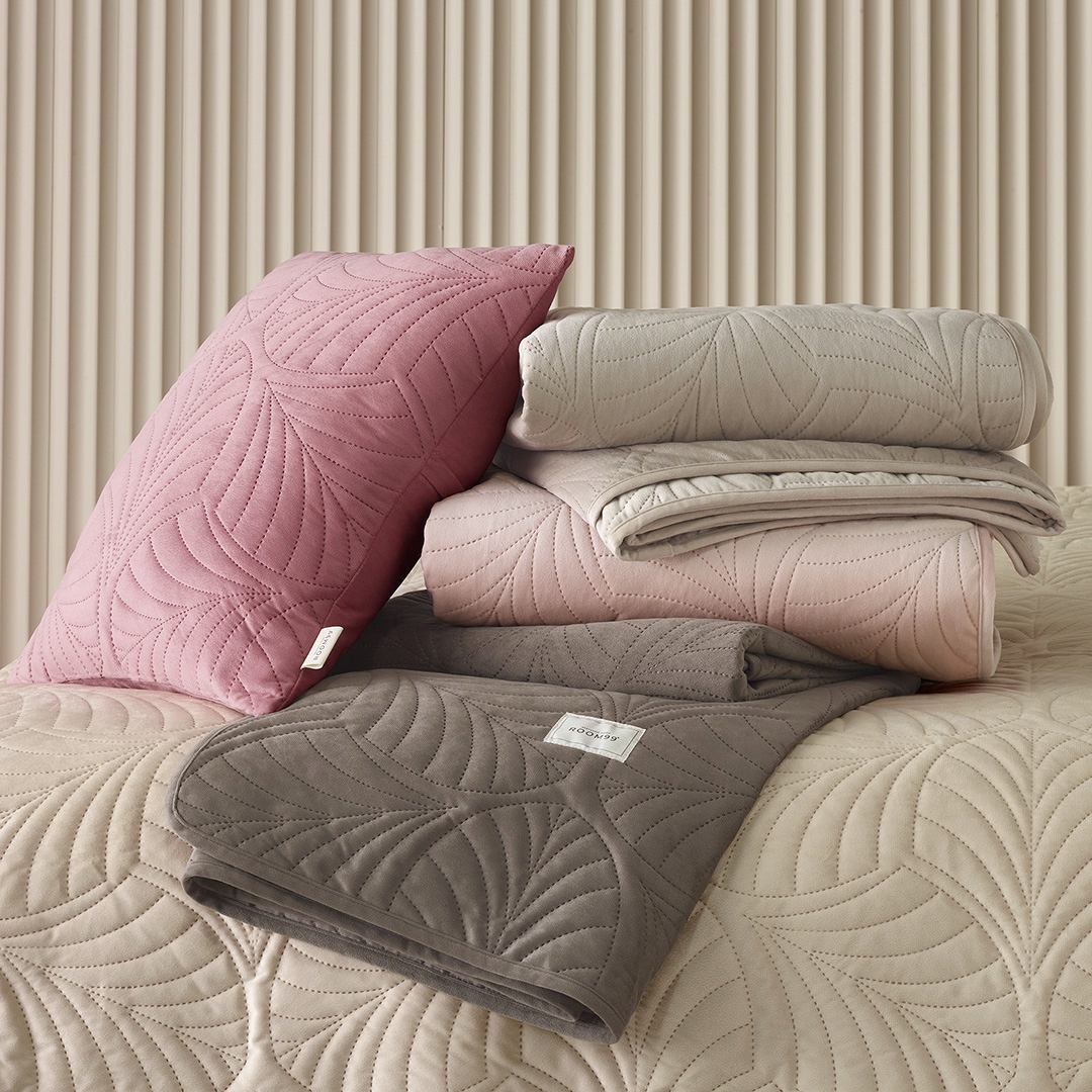 Покрывало Feel радует невероятной мягкостью и нежным блеском. Он изготовлен из приятного на ощупь велюрового полотна, которое слегка переливается в зависимости от угла освещения, создавая красивые визуальные эффекты.