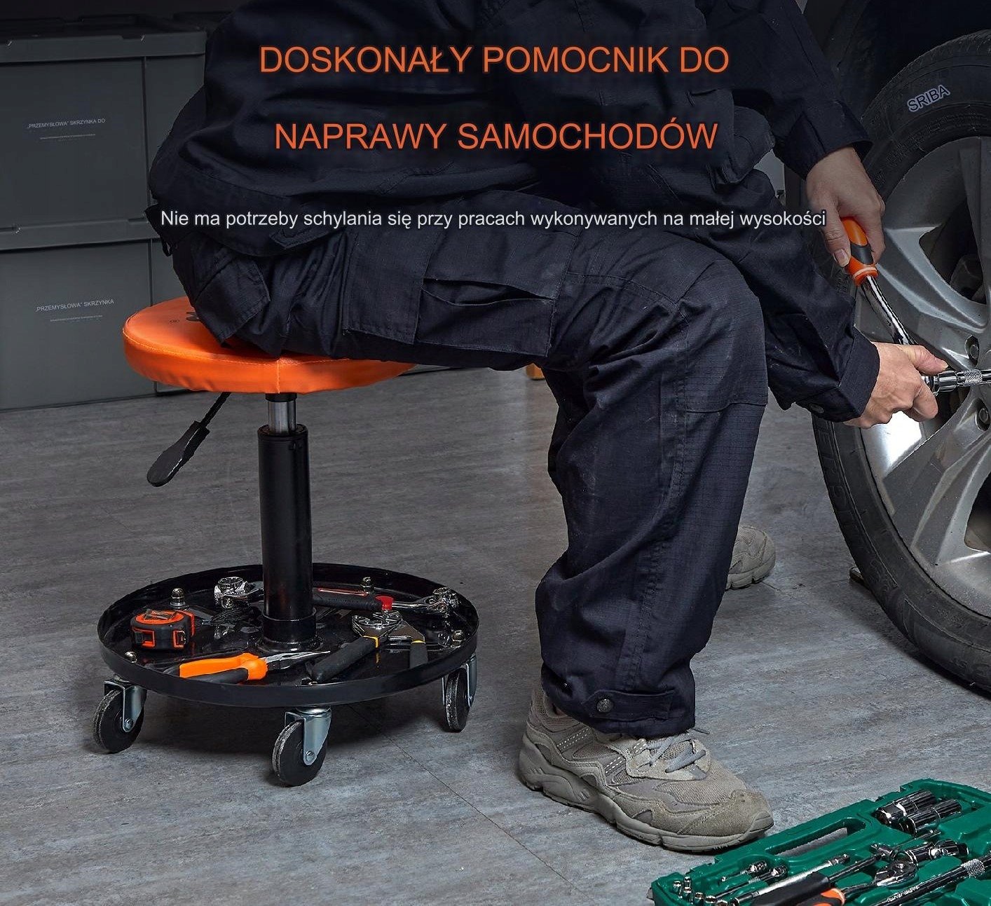 STOŁEK TABORET WARSZTATOWY NA KÓŁKACH