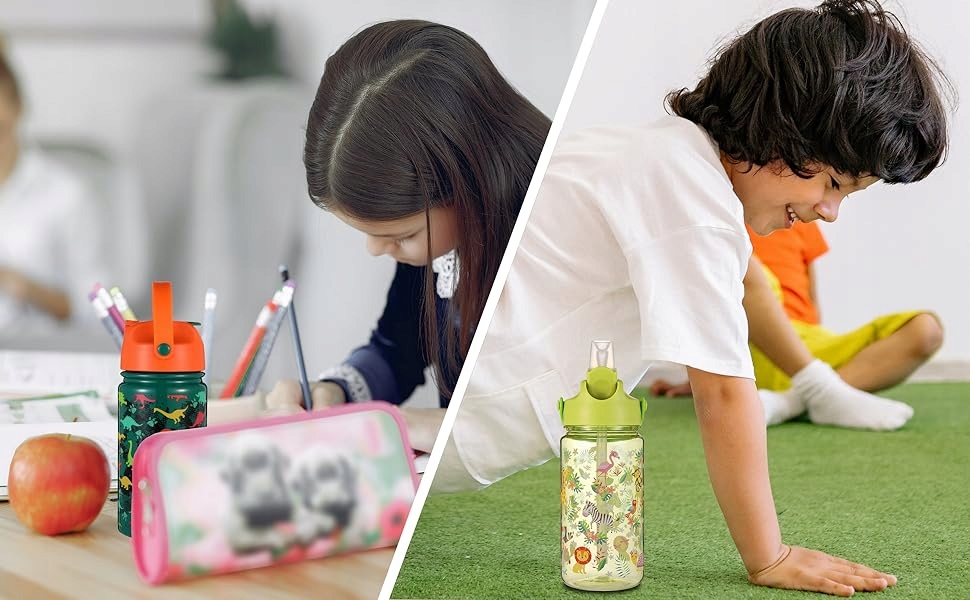 Бутылки для воды оснащены складной соломенной крышкой, которая не пропускает воду в закрытом состоянии. Он также имеет крышку, которая сохраняет соломинку в чистоте.