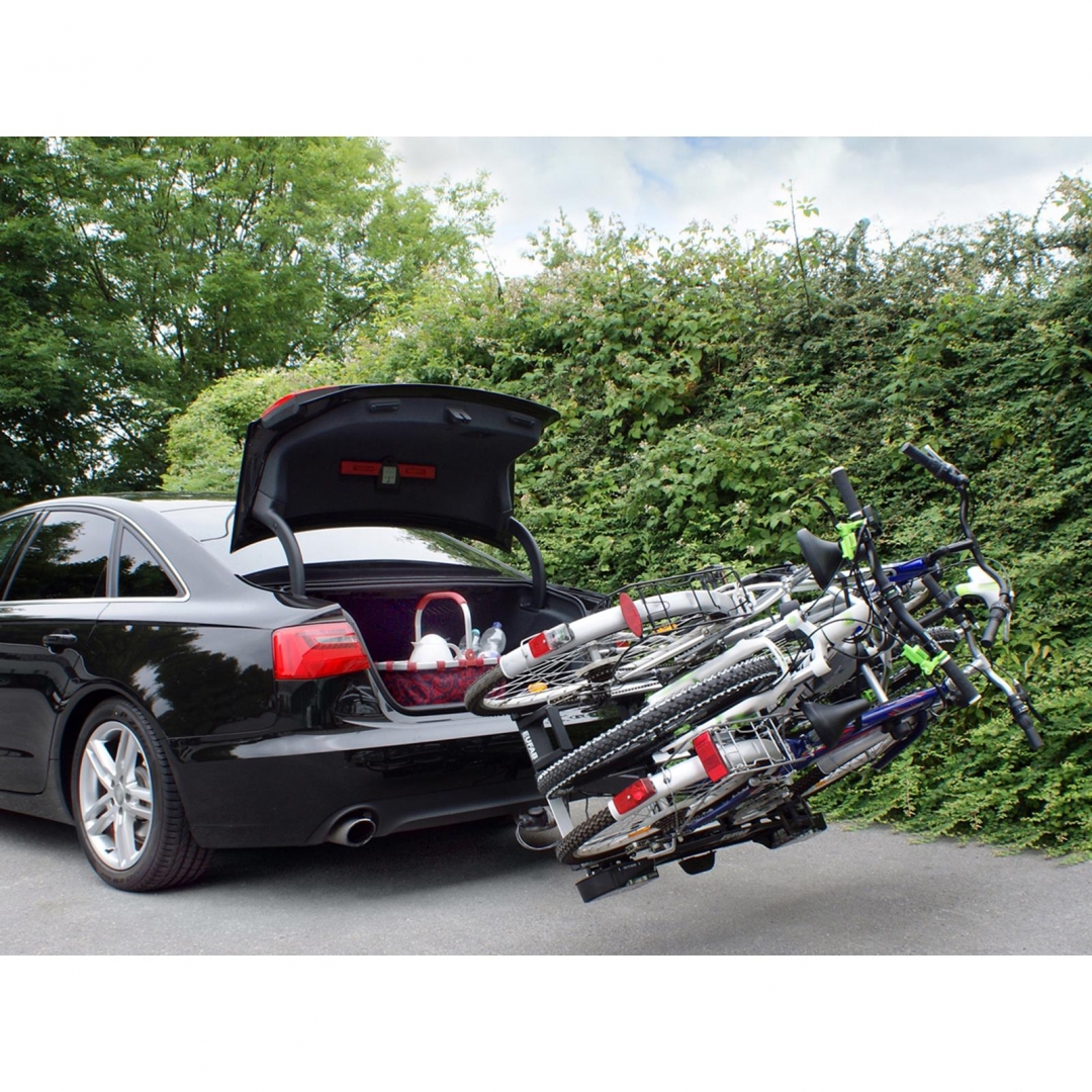 - багажник имеет функцию держателя для велосипедов. , наклон удобно активируется ногой с помощью педали, расположенной в задней части стойки.