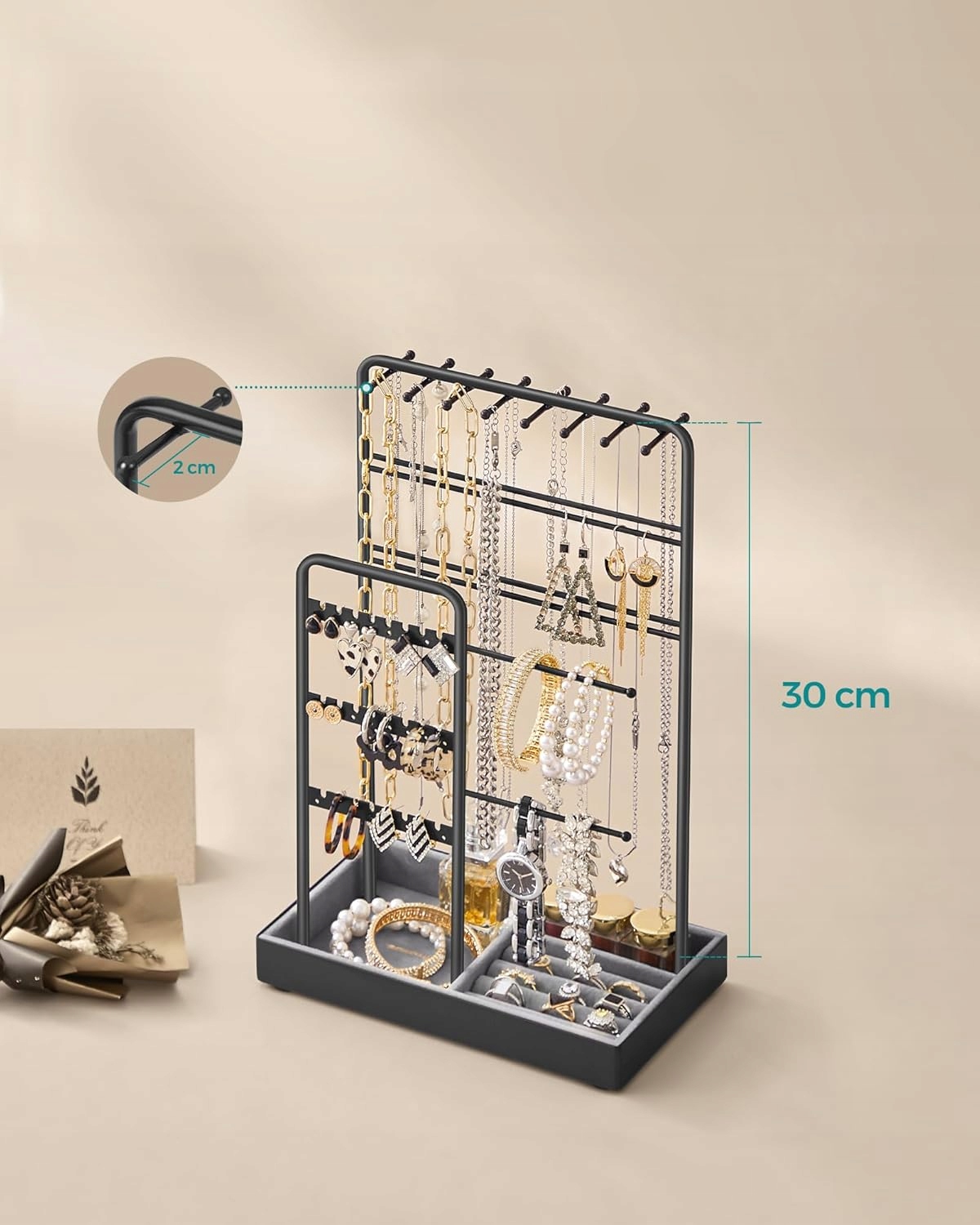 ✅ Хранение длинных ожерелий: Высота 30 см делает вас легко вписаться в более длинные ожерелья, которые останутся в безопасности и элегантно представлены > ✅ Элегантная и простая сборка: Современный дизайн и легкая сборка всего в двух шагах делают эту подставку и отличной идеей подарка