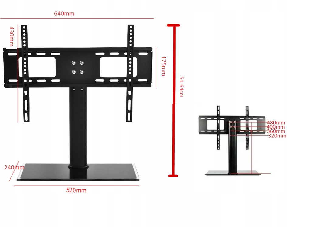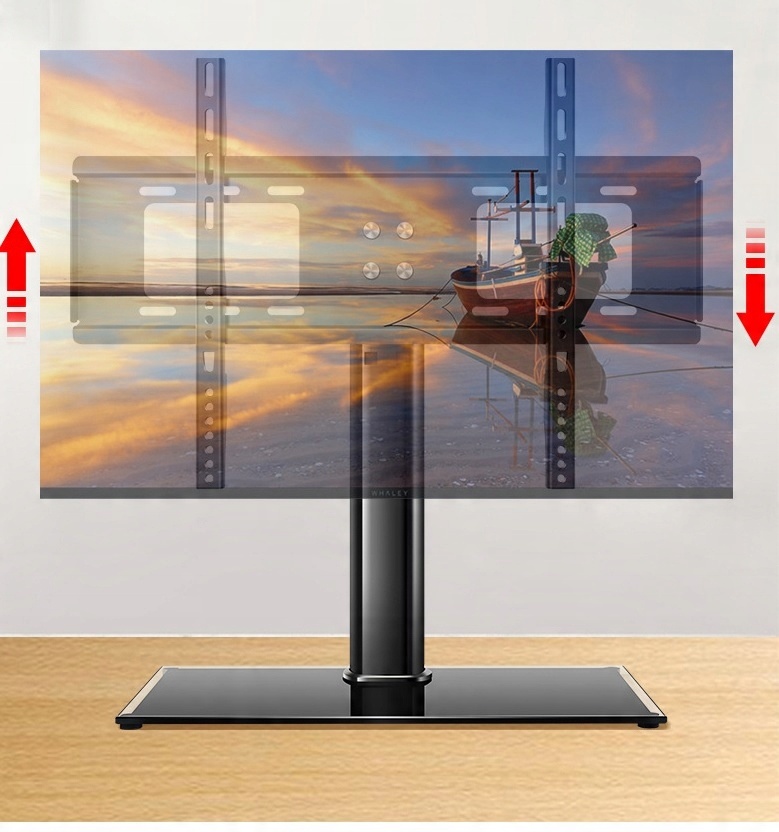 Если вы не можете найти подставку для телевизора или она повреждена или неустойчива, это идеальное решение. Наша подставка изготовлена из стали, что делает ее очень устойчивой даже для телевизоров весом 60 кг. Он обеспечивает широкую совместимость с креплениями VESA в диапазоне до 400 x 400. Важно отметить, что вы также можете регулировать высоту этой подставки для телевизора. Наше основание также используется, когда ваш стол/тумба под телевизор узкие и вам нужен центральный метод крепления вместо крайних ножек телевизора.