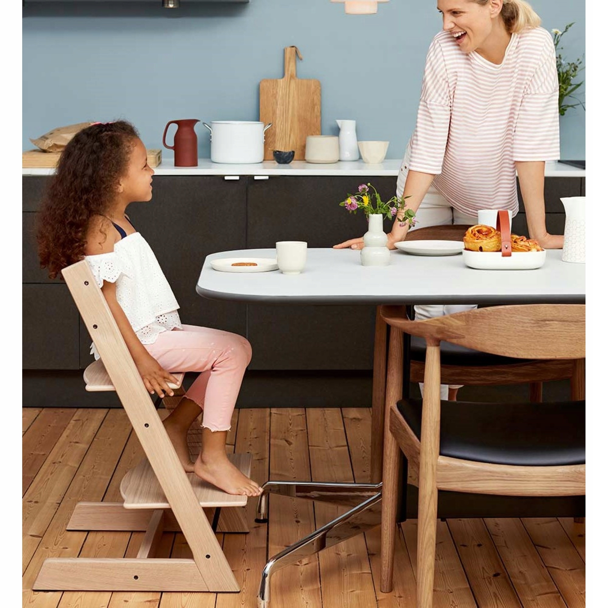 Tripp Trapp создан для того, чтобы приблизить ребенка к общему семейному столу, где он или она сможет учиться и развиваться рядом с вами. Правильная регулировка кресла обеспечивает комфорт и эргономику для ребенка любого возраста. Возможность установки специальных аксессуаров позволяет использовать кресло от рождения до взрослой жизни. Вневременной дизайн, использование массива дерева и возможность использовать стул в любом возрасте делают стул Tripp Trapp вневременным продуктом, который после покупки станет практичным украшением вашего стола на долгие годы.