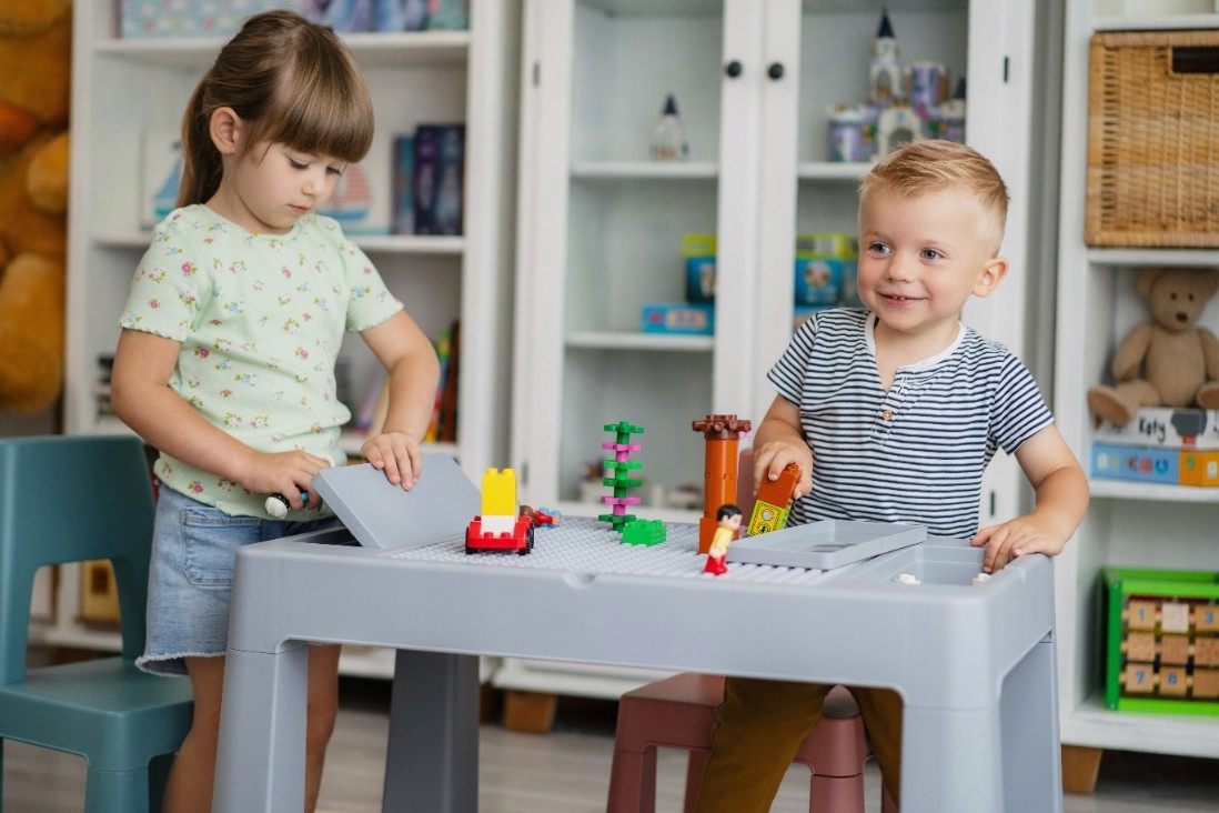 СТОЛ 2 стула 3в1 Столешница для песочницы для блоков серый розовый бирюзовый