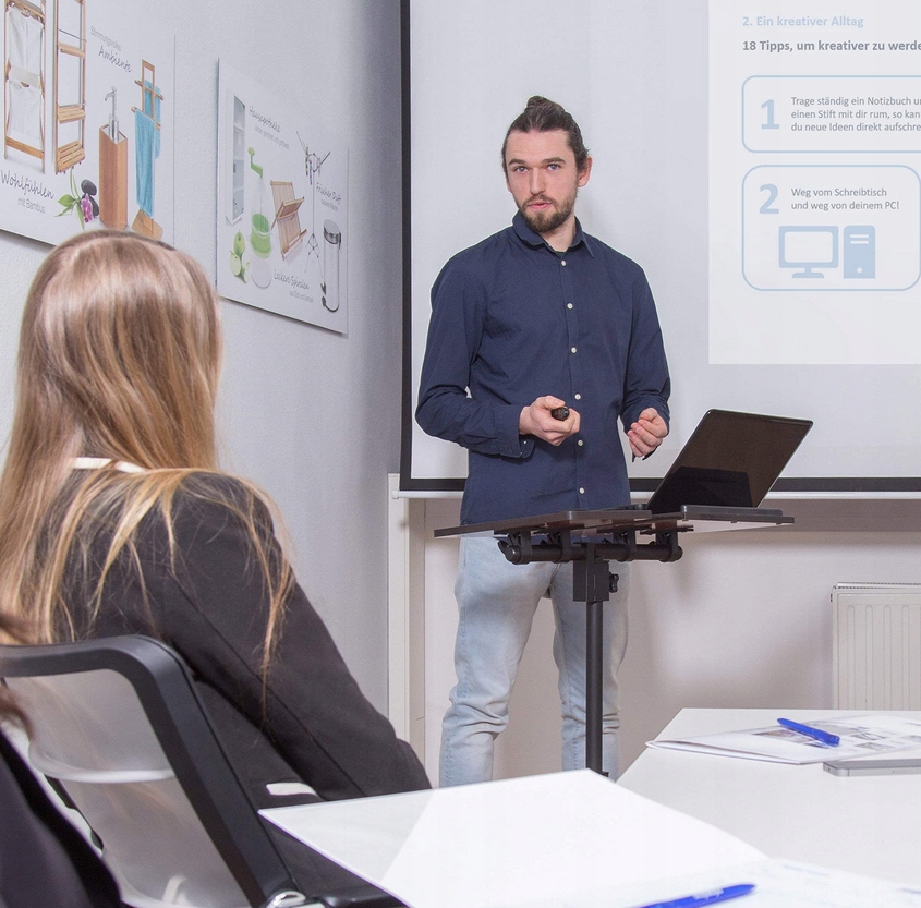 - Многофункциональность - тележка для проектора или стола для ноутбука может использоваться для различных целей, например, в качестве мобильное рабочее место, место для презентации или как столик для питья кофе или чая.
