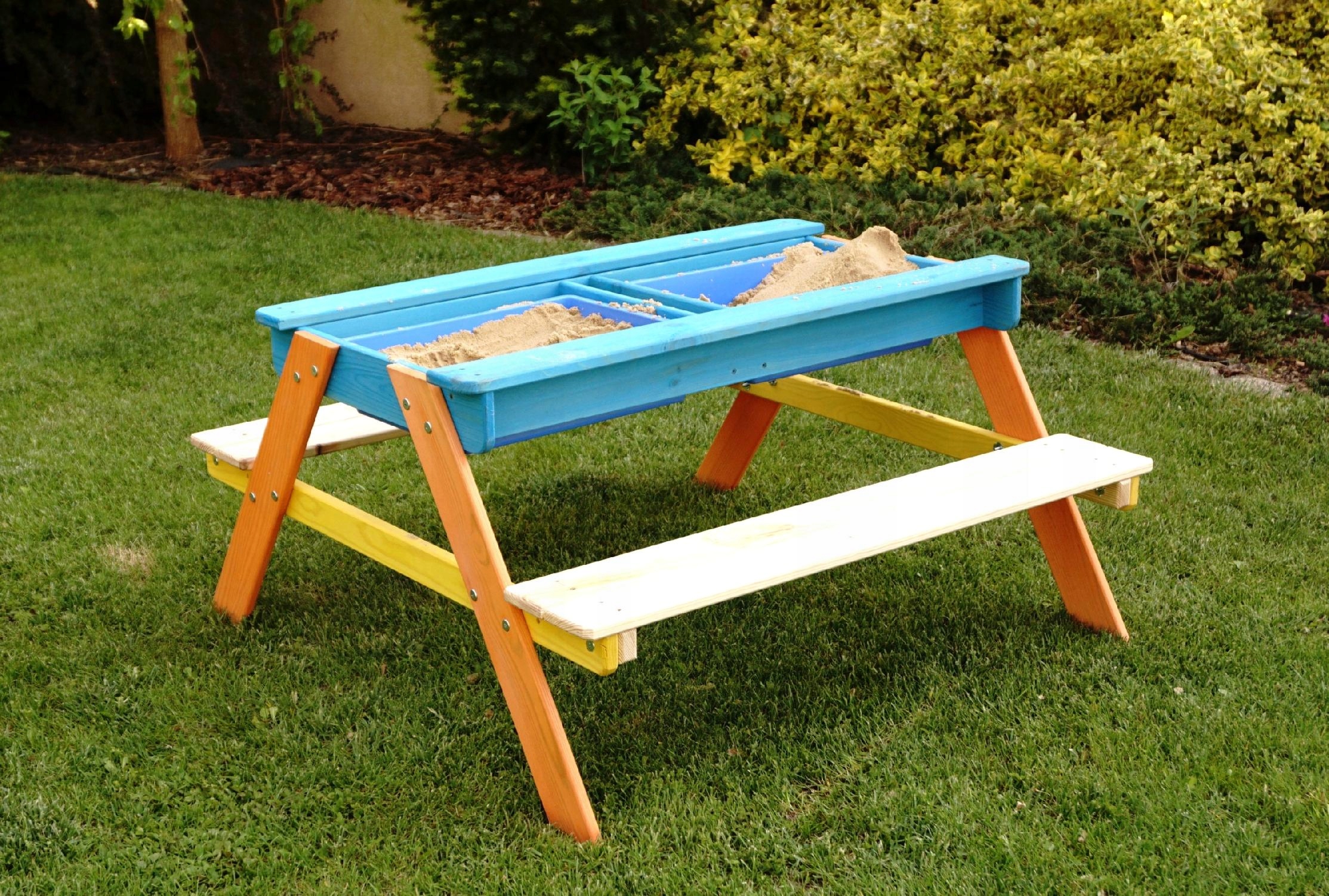 ✔️Под столешницей есть два синих пластиковых контейнера, которые можно наполнить песком или водой, там же можно хранить игрушки.