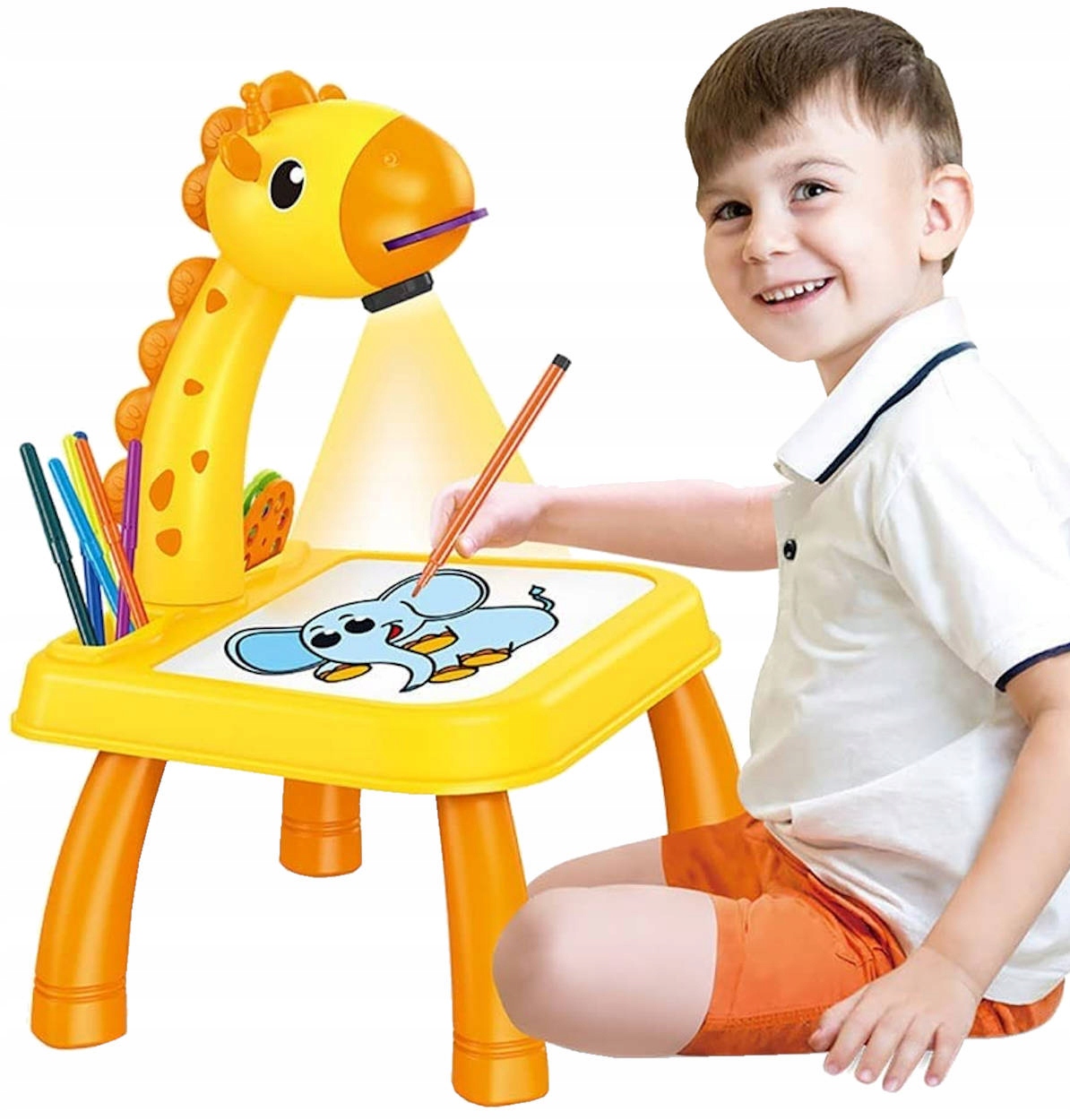 КРЕАТИВНЫЙ СТОЛ-ЖИРАФ С ПРОЕКТОРОМ ДЛЯ РИСУНКА + ЖЕЛТЫЕ АКСЕССУАРЫ