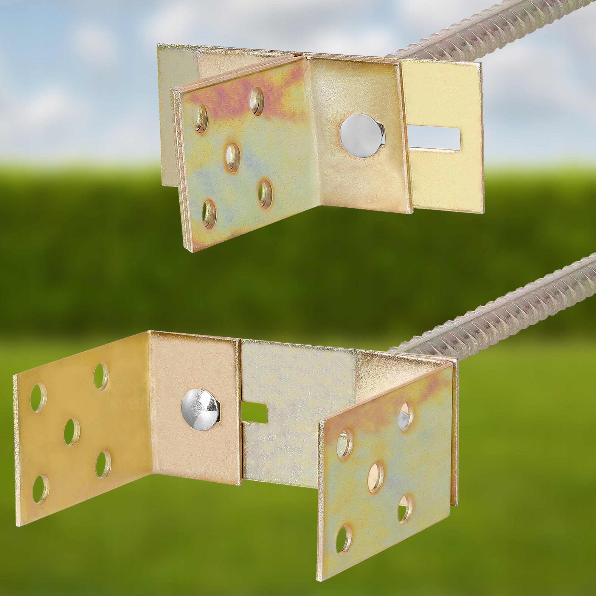 - Элемент изготовлен из прочной оцинкованной стали золотистого цвета. металл.