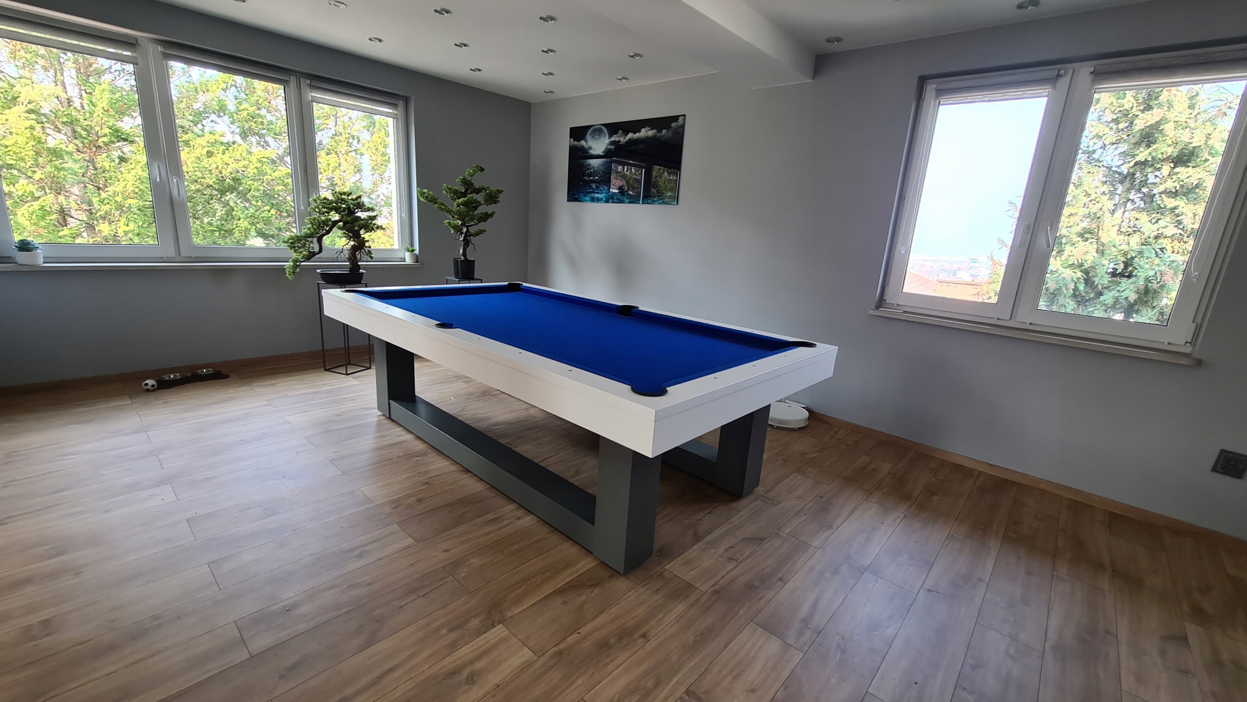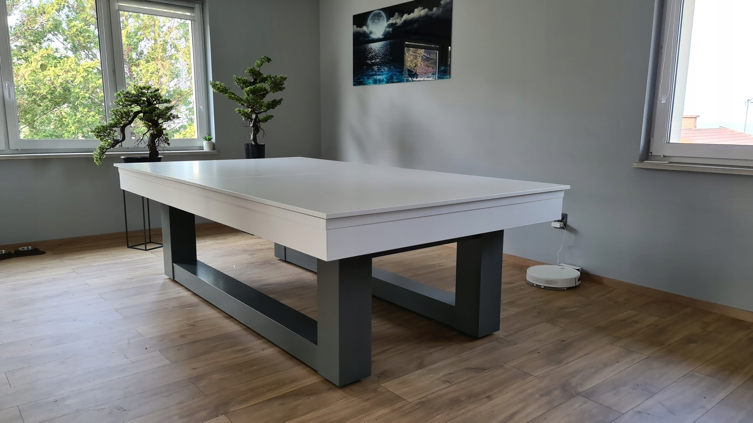 - Дизайн моделей столов, выпускаемых нашей компанией, тщательно продуман, поэтому чтобы клиент никоим образом не касался ног. Очертание стола. Мы гарантируем, что в сочетании с банкетной столешницей он создаст идеальный обеденный стол. Что касается нижней конструкции, то она отведена назад под венец, чтобы мы могли свободно сидеть и не касаться ногами нижней доски. Возможно, вы не видите этого на прикрепленных фотографиях предложения, но это то, что есть. Конструкция стола выпускается с 1995 года, поэтому с учетом нашего опыта и предложений клиентов она была тщательно усовершенствована и сделана так, чтобы идеально сочетать бильярдный и обеденный стол.
