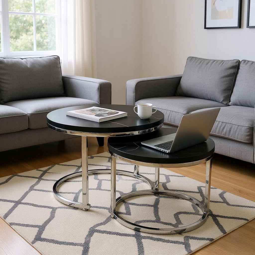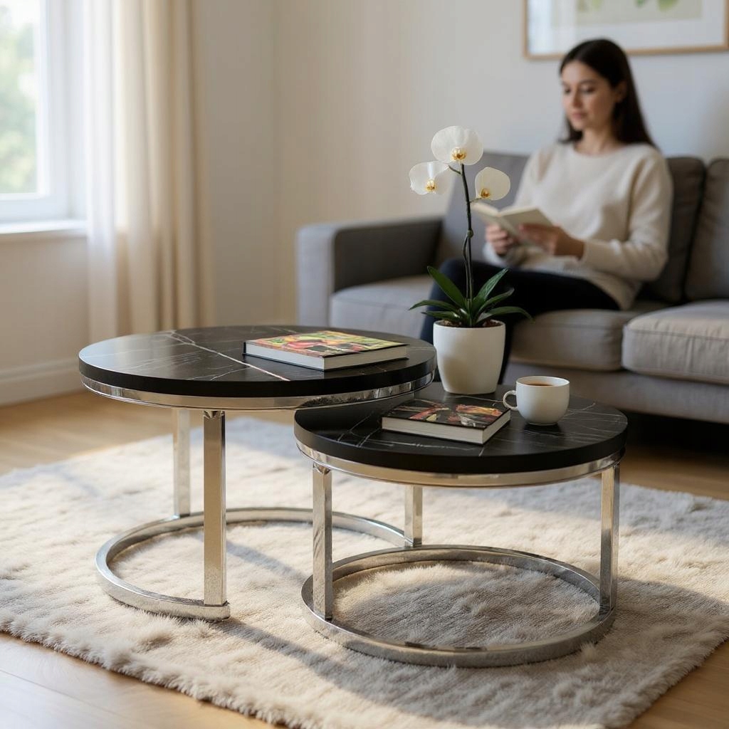 Эксклюзивный набор из 2 журнальных столиков — черный мрамор и хром