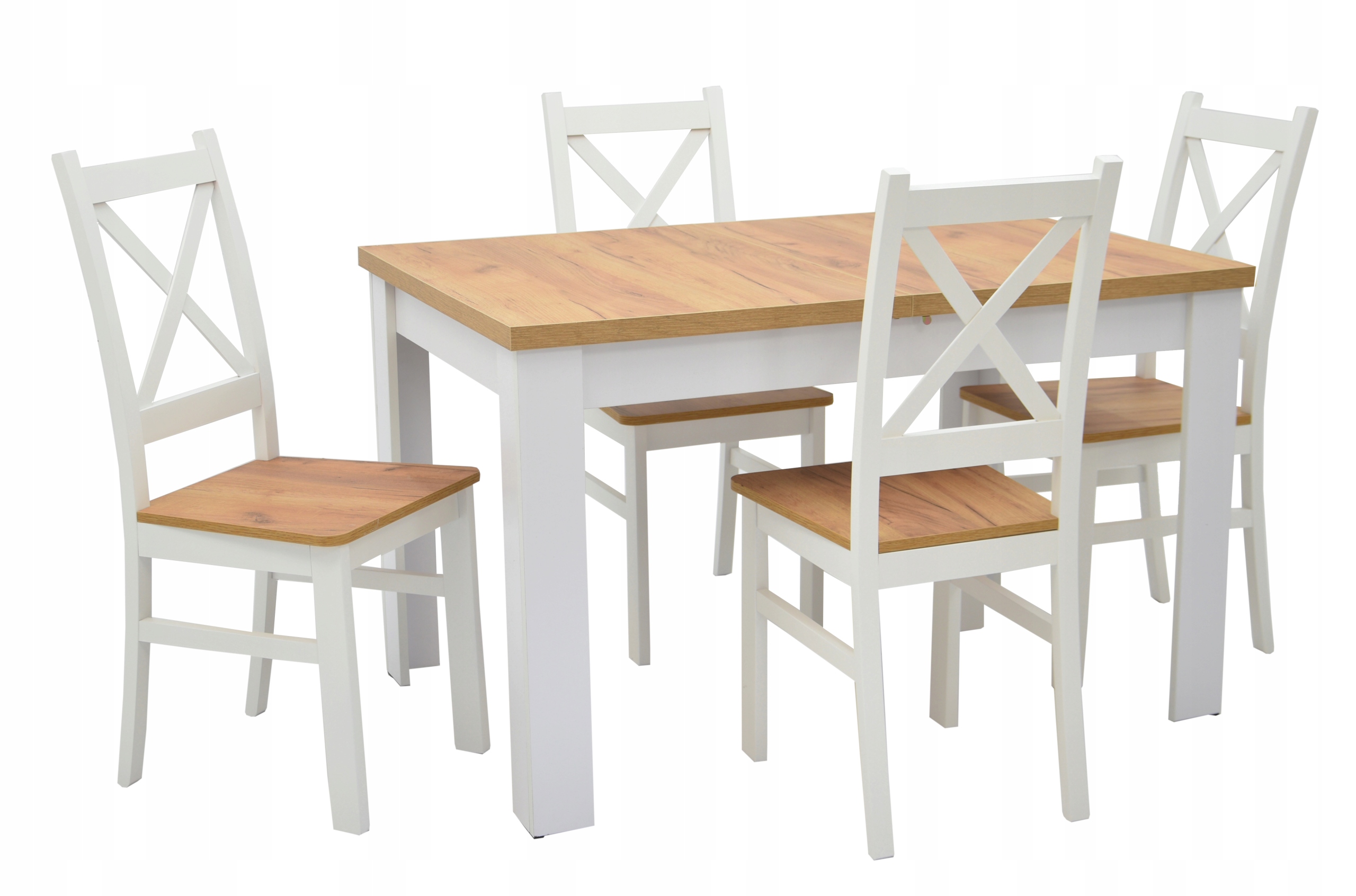 столик 80х120/160 + 4 білих СТІЛЬЦЯ для ВІТАЛЬНОЇ