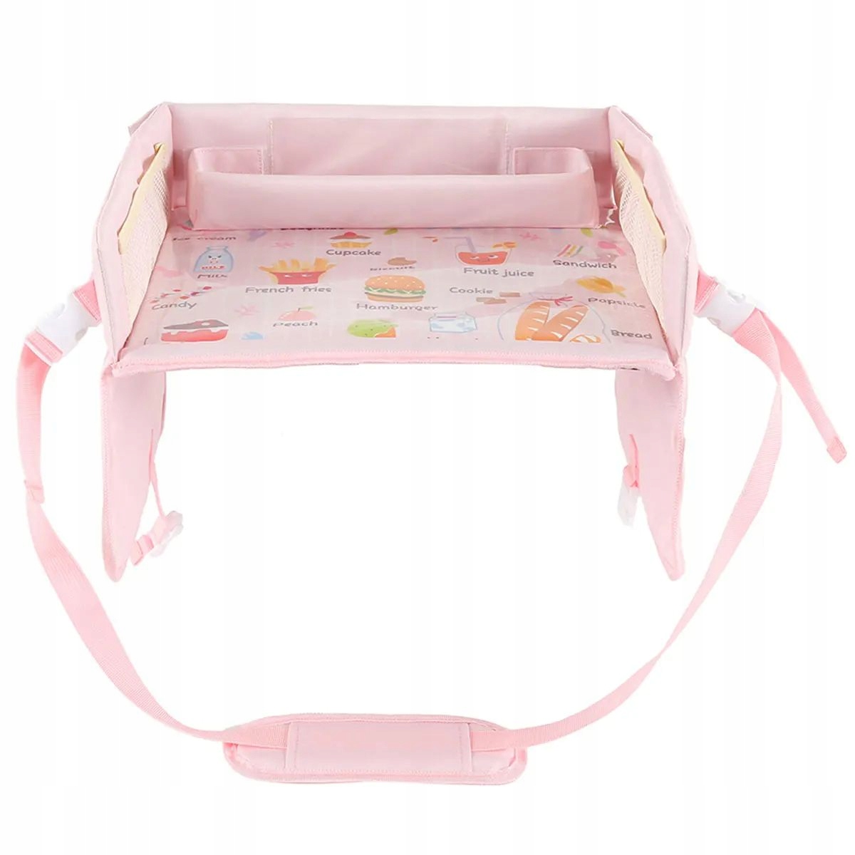 Многофункциональный дизайн: Дорожный стол оснащен просторной поверхностью, идеально подходящей для рисования, раскрашивания, игр или перекуса. Дополнительные боковые сетчатые карманы позволяют хранить необходимые предметы, например мелки, игрушки или салфетки.