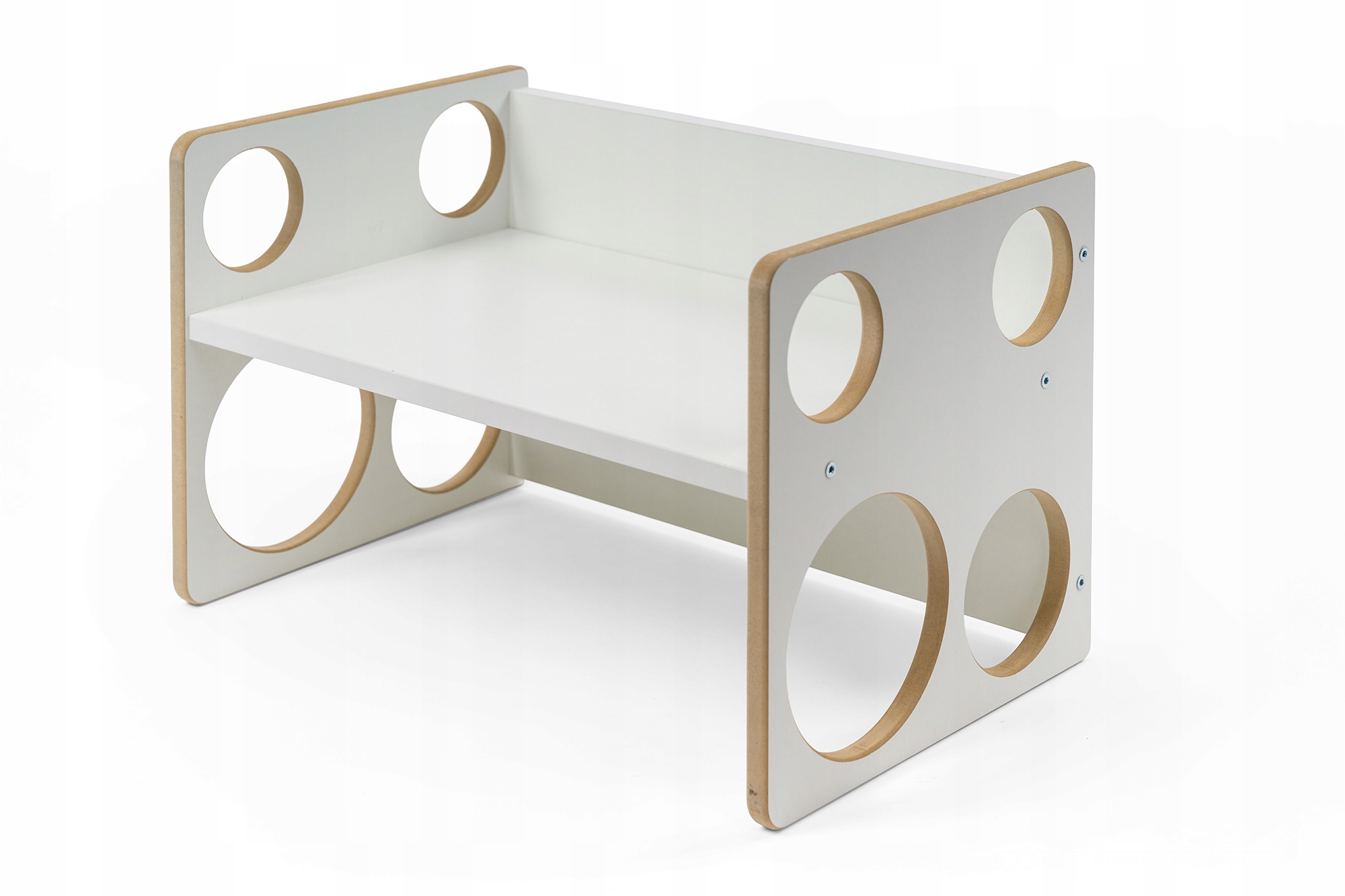 Предмет мебели может выполнять две функции - в сочетании со стульчиком может быть письменным столом для малыша - а может быть и самой скамейкой, все зависит от ваших потребностей - поворачиваете изделие и меняете его функциональность.