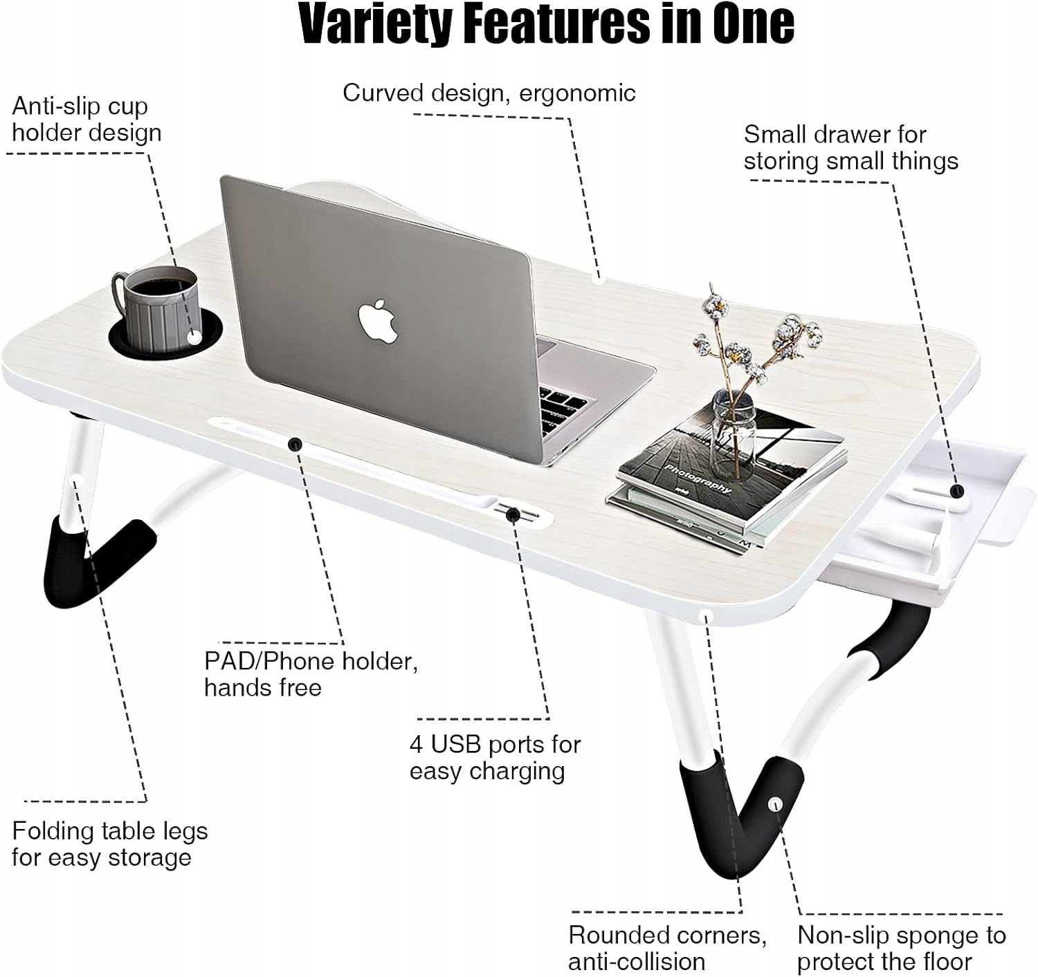 - Сохранение пространства - столик для ноутбуков не должен быть установлен, ноги стола сложены, просто откройте ноги стола за 3 секунды. Если вы не используете складной стол для ноутбуков, вы можете положить его у кровати или за дверью, не занимая место.