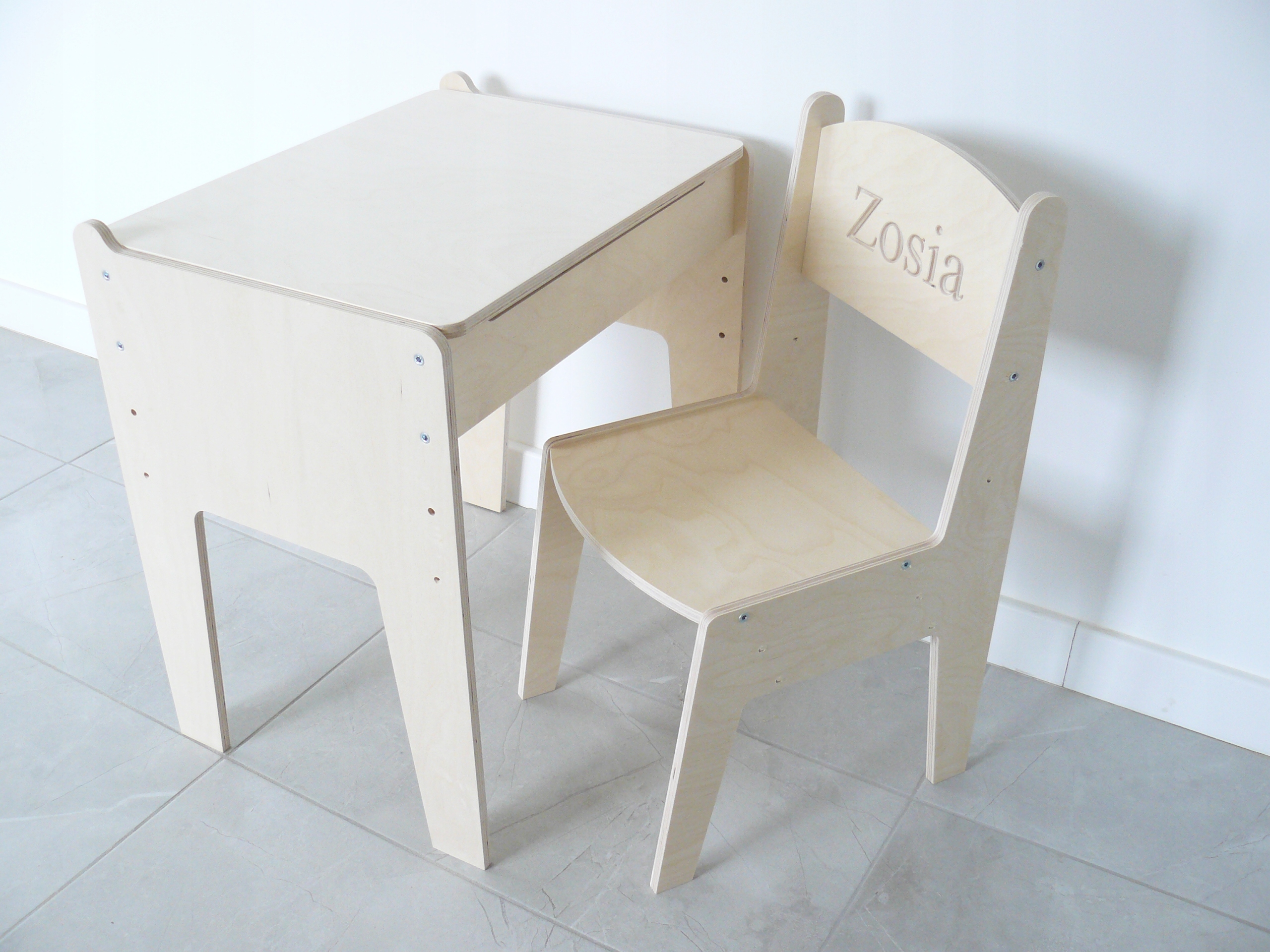 Комплект состоит из стола и стульев. . Он изготовлен из фанеры, не покрыт лаком. И стол, и стул имеют три уровня регулировки: для малышей, для малышей и для пожилых. Стол имеет практичный отсек для хранения вещей. Набор прекрасно дополнит мебель детской комнаты и сделает ее интерьер теплым и веселым. Мебель функциональна и не занимает много места. Стул очень удобный, а на столе достаточно места для игры. Ваш ребенок найдет идеальное место для игр, рисования и даже приема пищи.