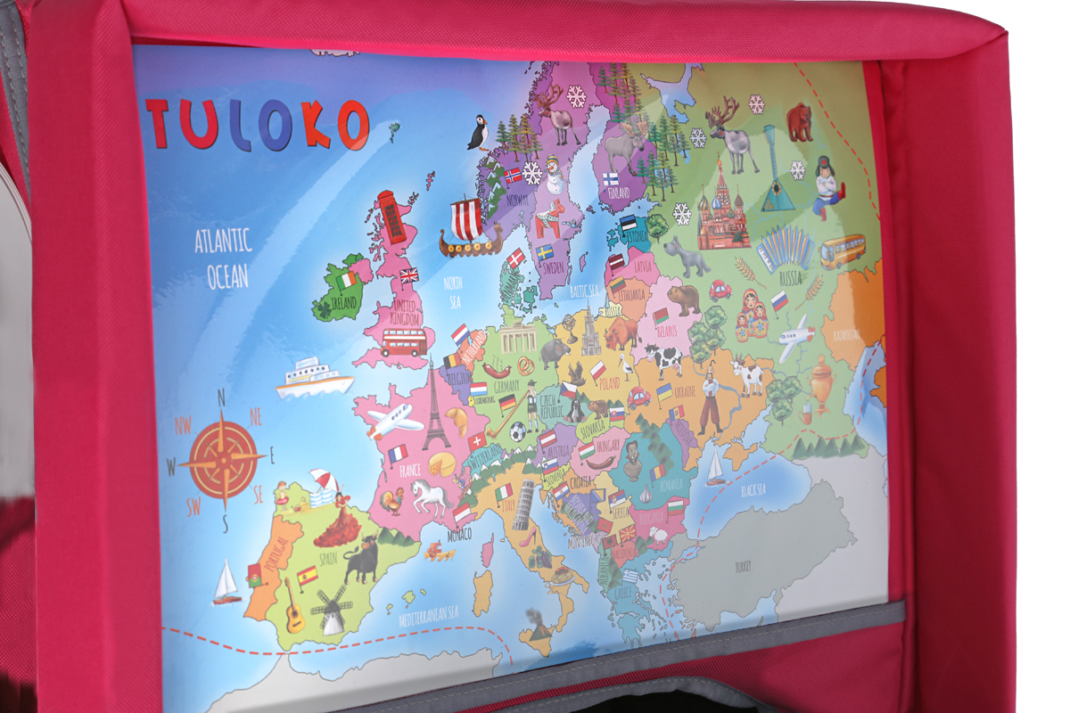 Детский дорожный стол с учебной картой Польши или Европы, производство Польша. Идеально подходит для путешествий на автомобиле, поезде, автобусе или самолете. Этот универсальный стол растет вместе с ребенком и предназначен для детей примерно от 2 лет. Благодаря образовательной карте Польши или Европы дети могут следить за маршрутом путешествия во время вождения и узнавать о животных, странах и характерных местах Европы. Дополнительно стол имеет прозрачный кармашек сверху, в который можно положить детский рисунок. Сборка проста, а прикрепленный ремешок с застежкой обеспечивает безопасность. Большая поверхность столешницы обеспечивает комфортную игру и просмотр книг, а высокие боковые стенки предотвращают падение предметов на пол. Стол также имеет боковые карманы, легкий доступ ребенка к питью и его любимой игрушке. Стол изготовлен из мягкого пенопласта, безопасен и легок, поэтому его легко переносить. Передвижной столик также можно прикрепить к коляске с помощью руля. Стол покрыт водонепроницаемым материалом, его легко чистить, и он подходит для большинства автомобильных сидений.