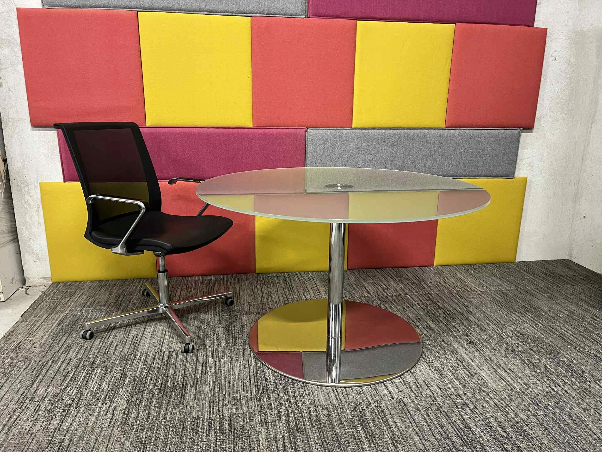 Круглый стеклянный журнальный столик, диаметр 120 см.