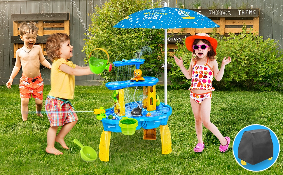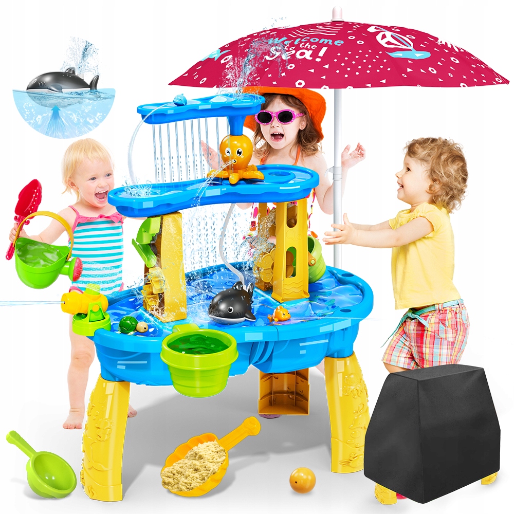 3-ЯРУСНЫЙ СТОЛ ДЛЯ ВОДЫ И ПЕСКА С ЗОНТОМ И ВОДЯНЫМ НАСОСОМ ДЛЯ МАЛЫШЕЙ И ДЕТЕЙ