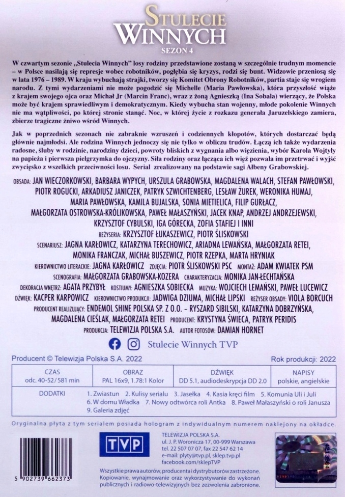 Оплачивая «СТОЛІТТЯ ВИННИХ СЕЗОНИ 1 - 4 16DVD ФІЛЬМ» данный товар из каталога «серіал», вы можете получить дополнительную скидку 4%, если произведете 100% предоплату. Размер скидки вы можете увидеть сразу при оформлении заказа на сайте. Внимание!!! Скидка распространяется только при заказе через сайт.
