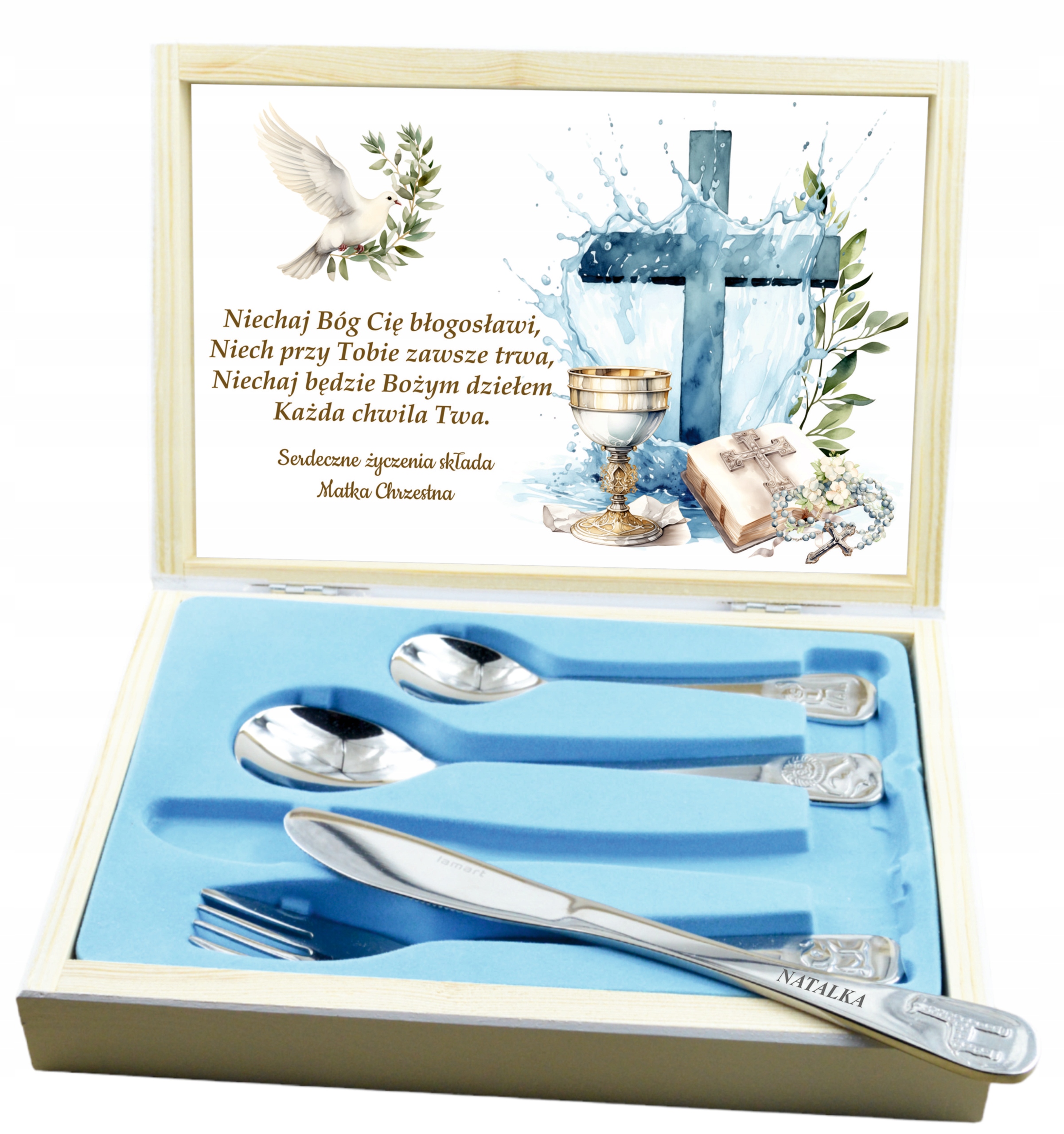 ПОДАР НА СВЯТОЕ КРЕЩЕНИЕ - СТОЛОВЫЕ ПРИБОРЫ В КОРОБКЕ С ГРАВИРОВКОЙ