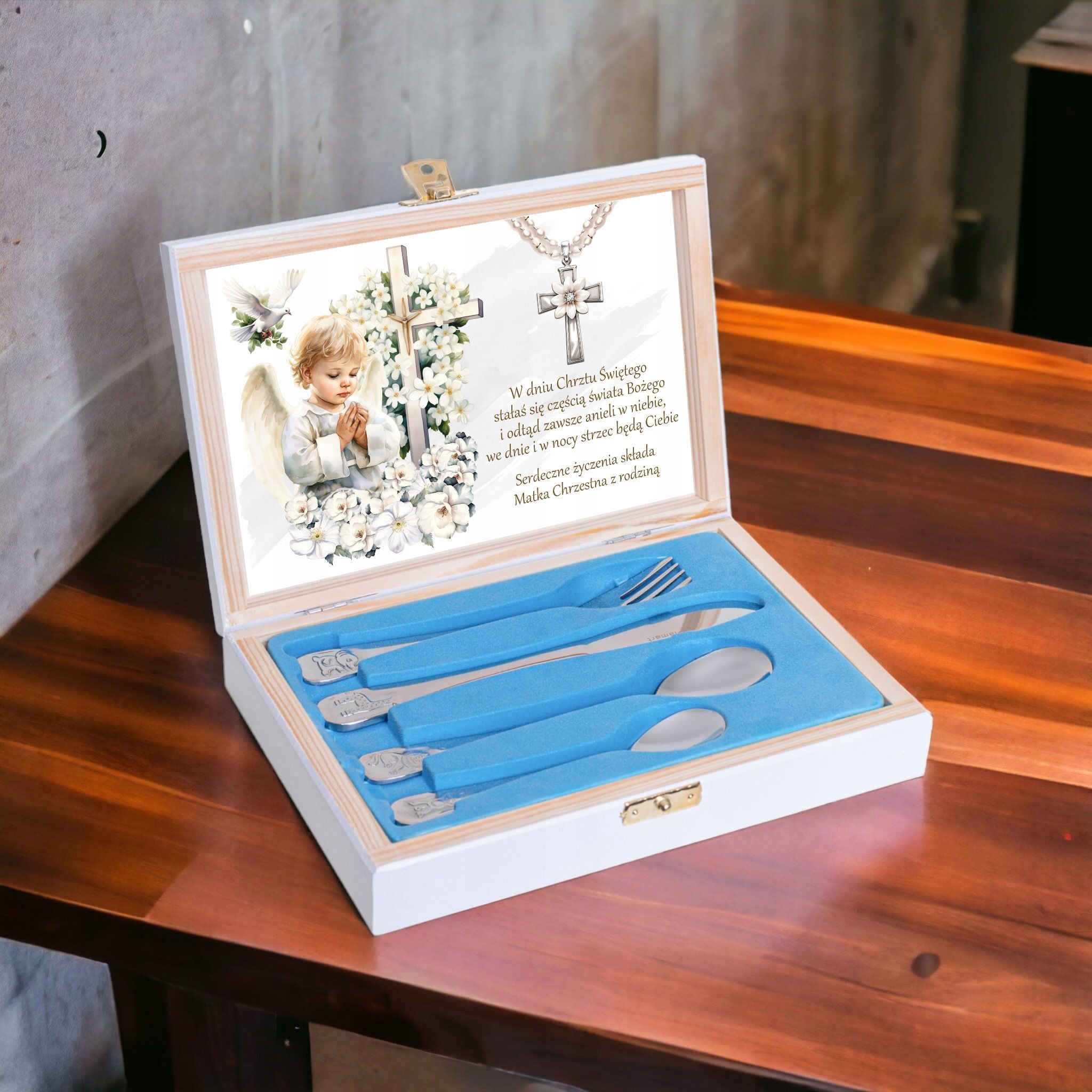 ПОДАР НА СВЯТОЕ КРЕЩЕНИЕ - СТОЛОВЫЕ ПРИБОРЫ В КОРОБКЕ С ГРАВИРОВКОЙ