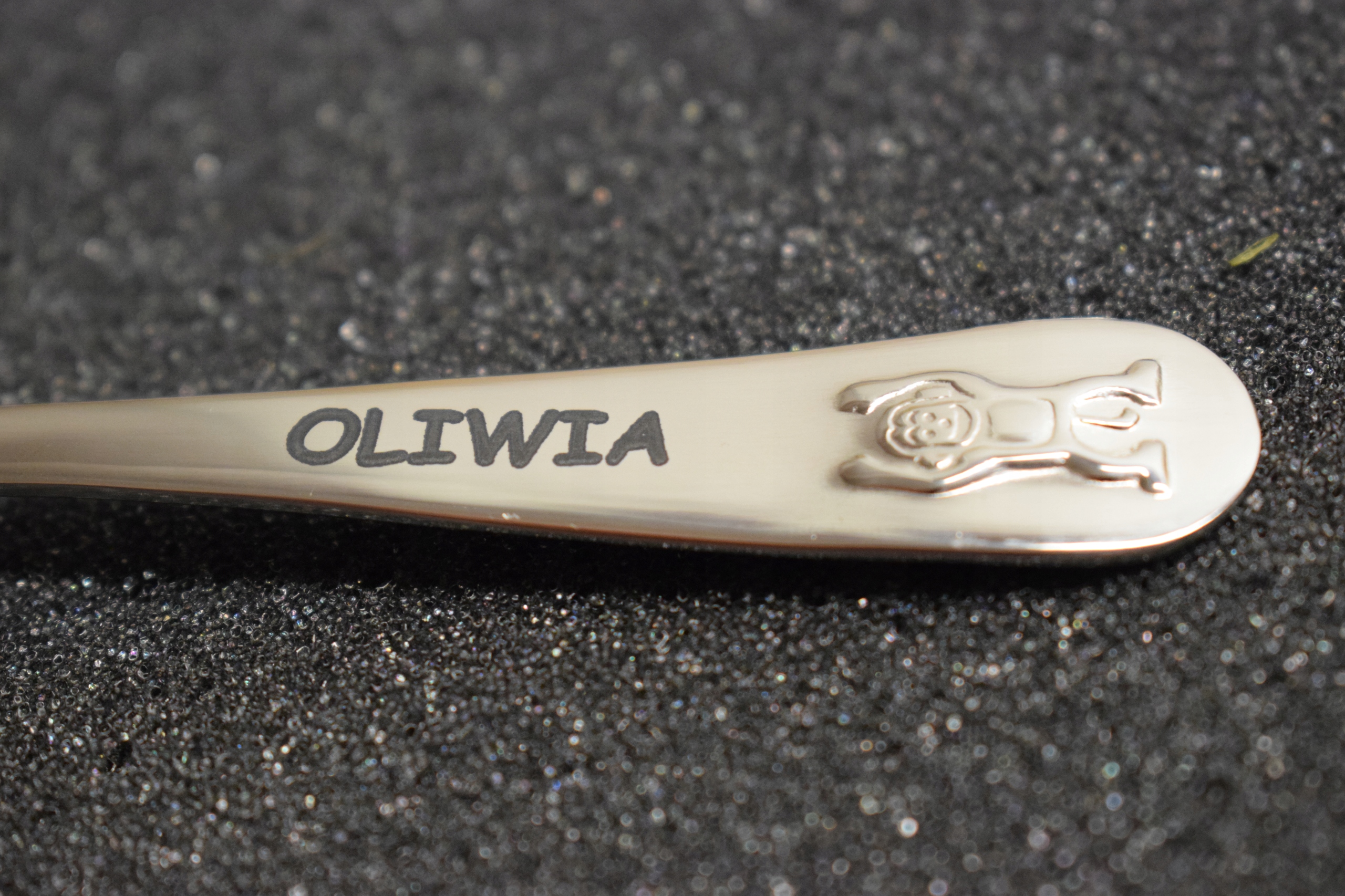 1). Имя ребенка или любая другая надпись до 10 символов, которую мы выгравируем на столовых приборах