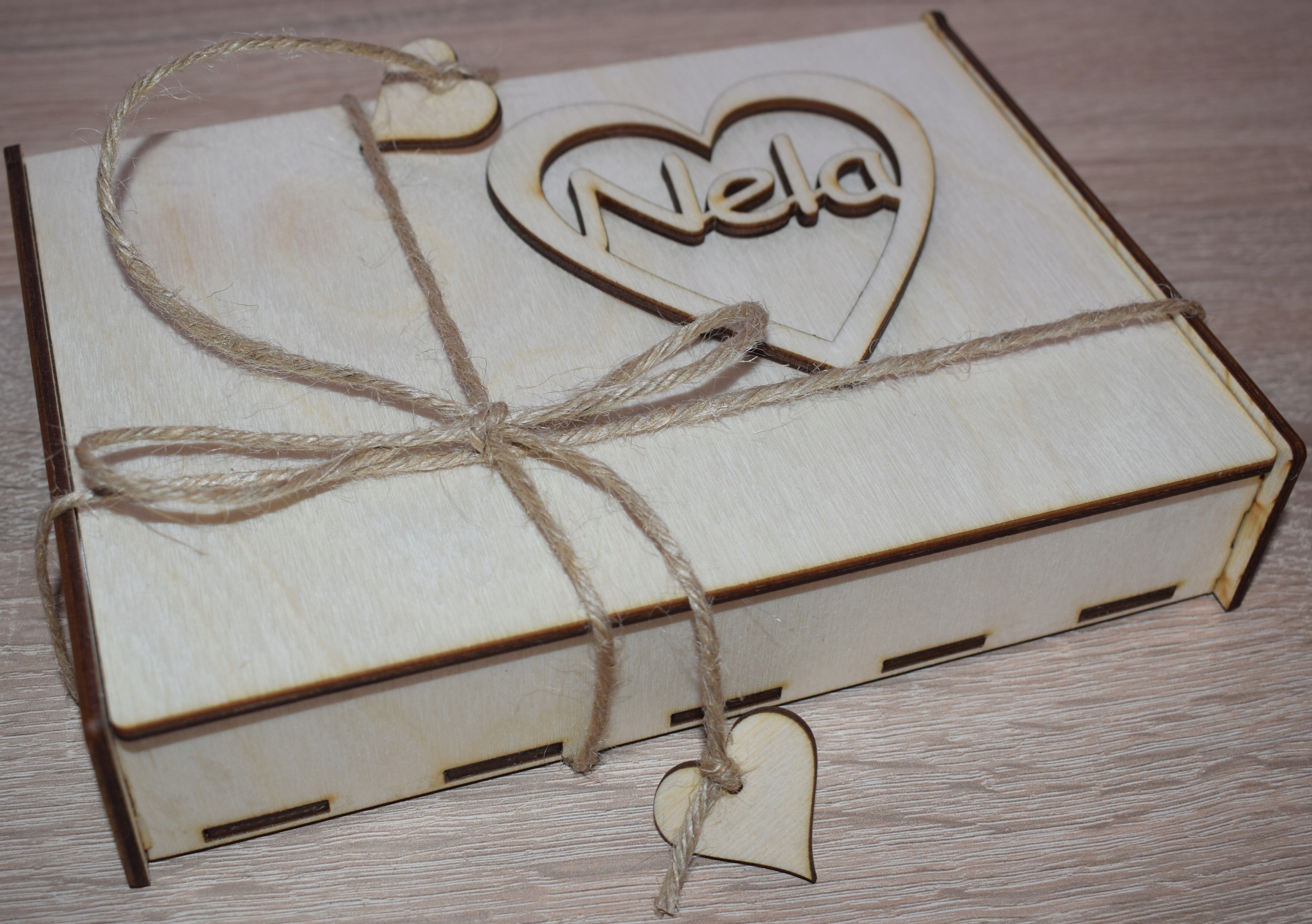 2). Имя ребенка или любая другая надпись до 10 символов, которую мы можем разместить в сердечке на крышке коробки