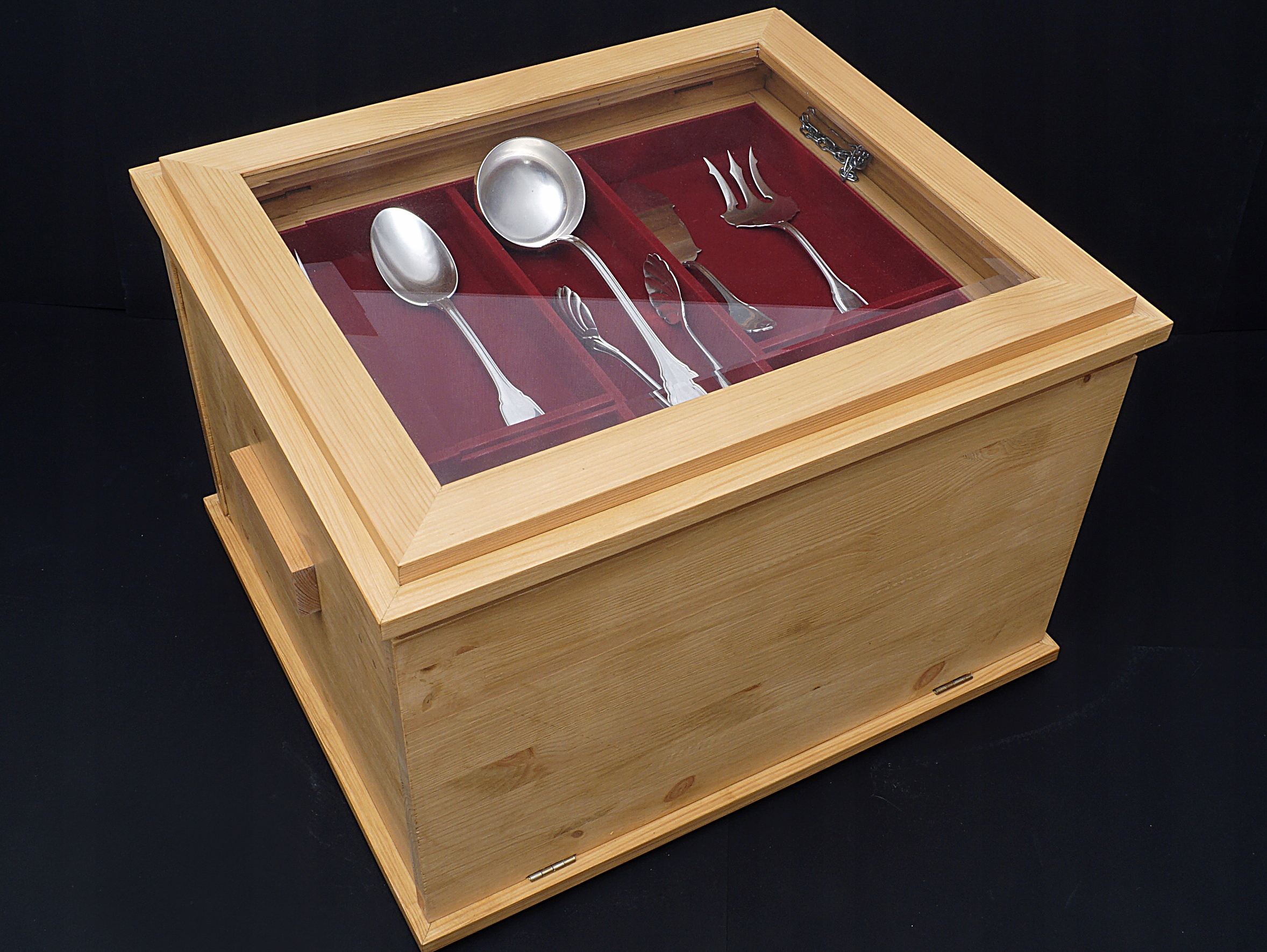 Состояние набора очень хорошее. Столовые приборы находятся в новом сосновом ящике. Ящики обшиты бордовым бархатом.