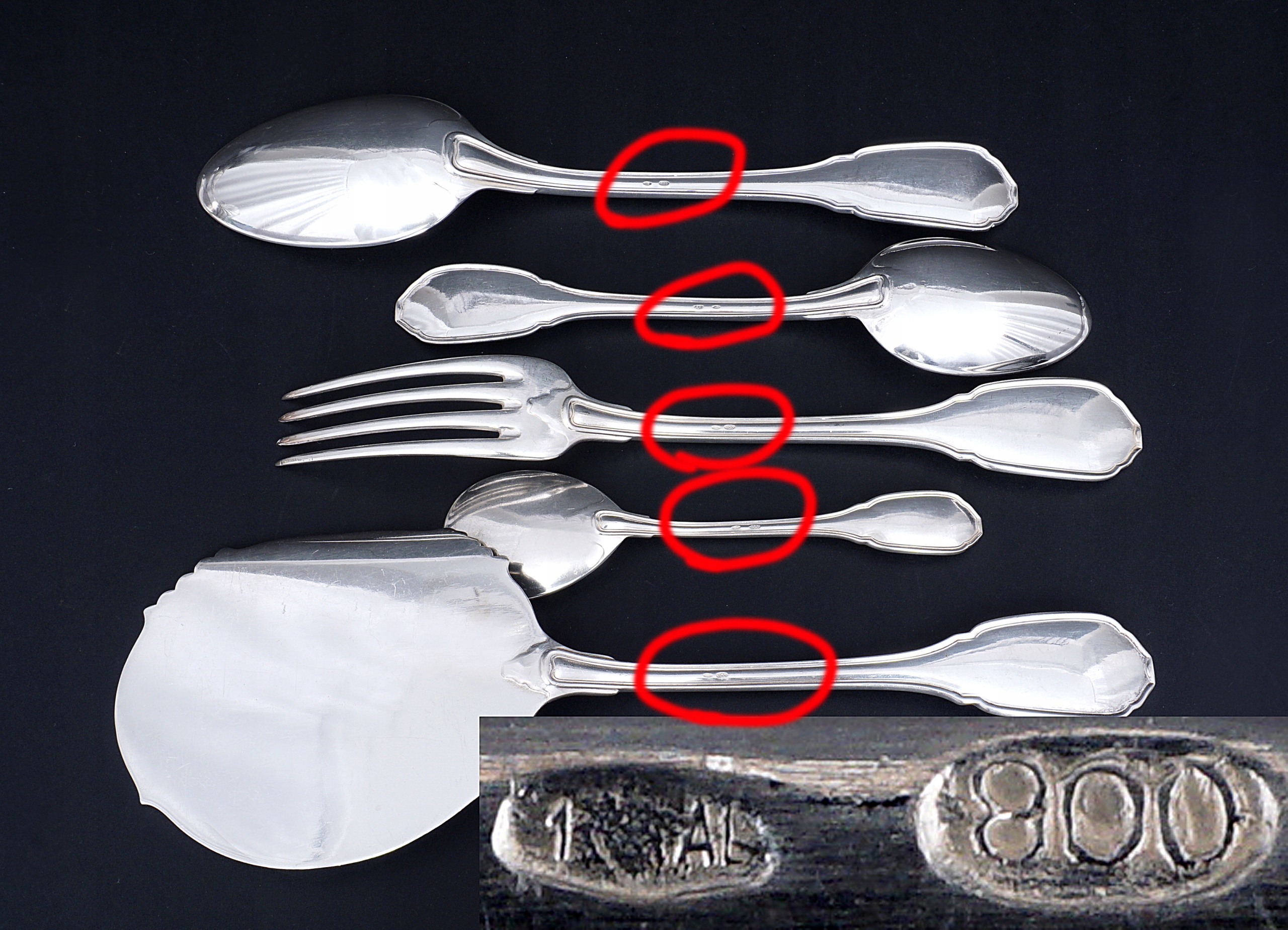 Серебро пробы 800 и ювелирное клеймо 1 AL.