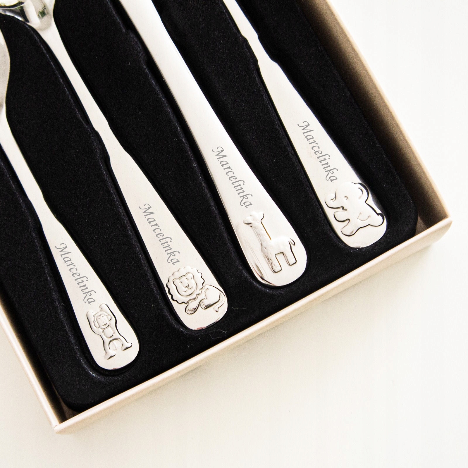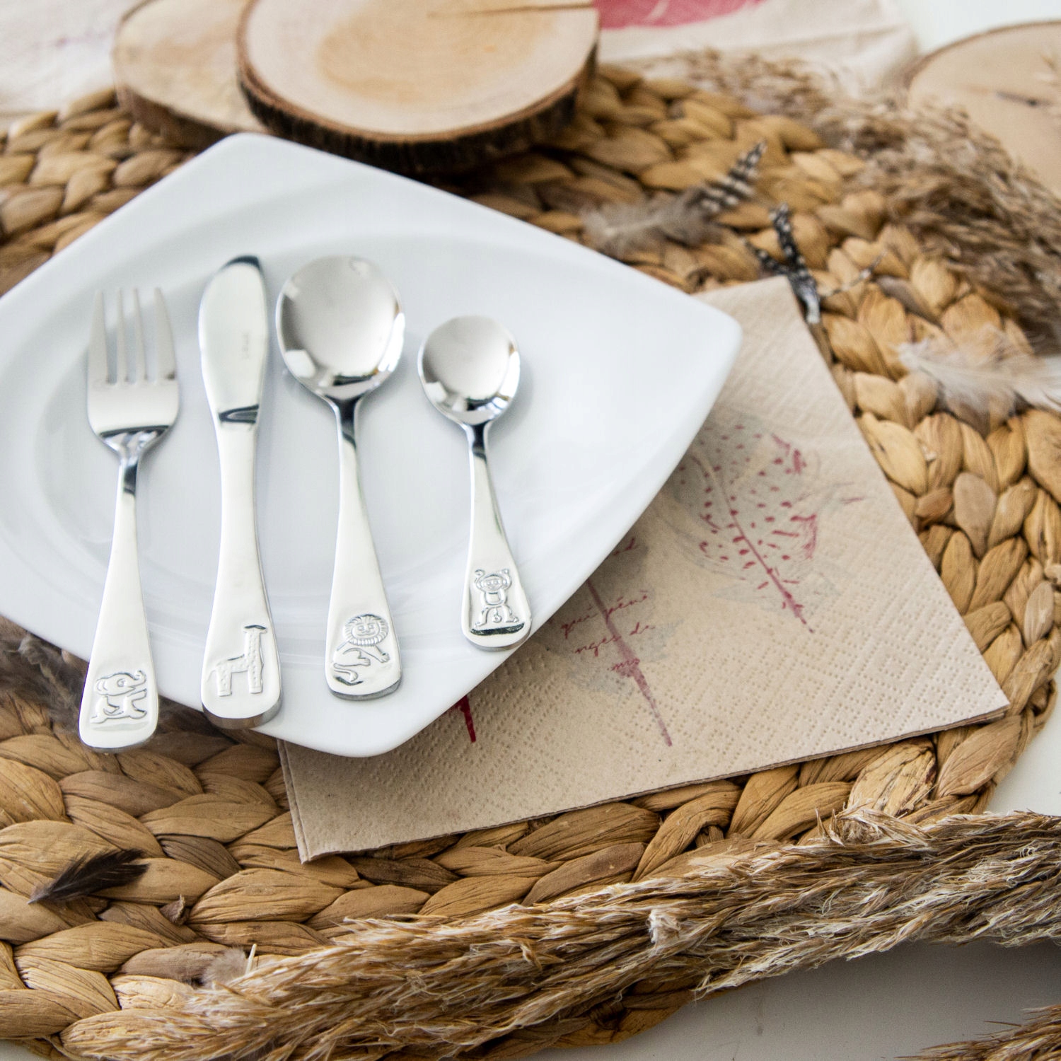 Красивые столовые приборы детские с тиснением мотива ЗООПАРКА.