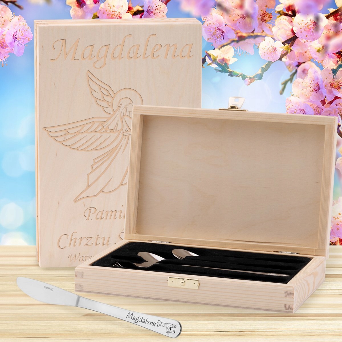 Столовые приборы с именем вне времени и будут очаровывать своим элегантным внешним видом долгие годы. Детские столовые приборы в подарок на крещение – проверенный подарок на крестины или первый день рождения.