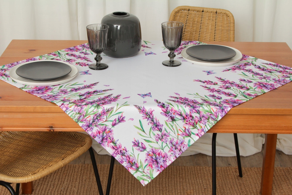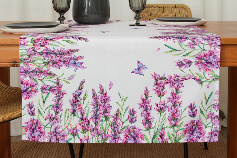 Столовая табличка пятно -резистентная лаванда фиолетовые цветы прямоугольник 140x280 см.