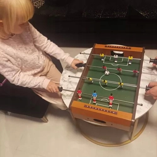 футбол для детей/футбольный стол Вам не нужно беспокоиться о потере мяча. Ворота расположены по обе стороны стола, что увеличивает комфорт игр. Кроме того, каждый из руководств был закреплен с помощью стопоров, благодаря тому, что таблица во время эмоциональных игр является стабильным и не подвергается воздействию обивки. Это отличный способ играть для детей, молодежи и взрослых - независимо от пола. Вам не нужно отличить преступника из угла - все, что вам нужно сделать, это повеселиться . Даже ручные руки будут придерживаться ручки . вам больше не нужно помнить результат - его легко забыть в эмоциях или «случайно» добавить несколько целей от вашего соперника. 50 x 51,5 см; Таблица: 50 x 10 x 31 см Общее измерение: 50 x 10 x 51,5 см Вес: 1,905 кг Вес с упаковкой: 2,386 кг