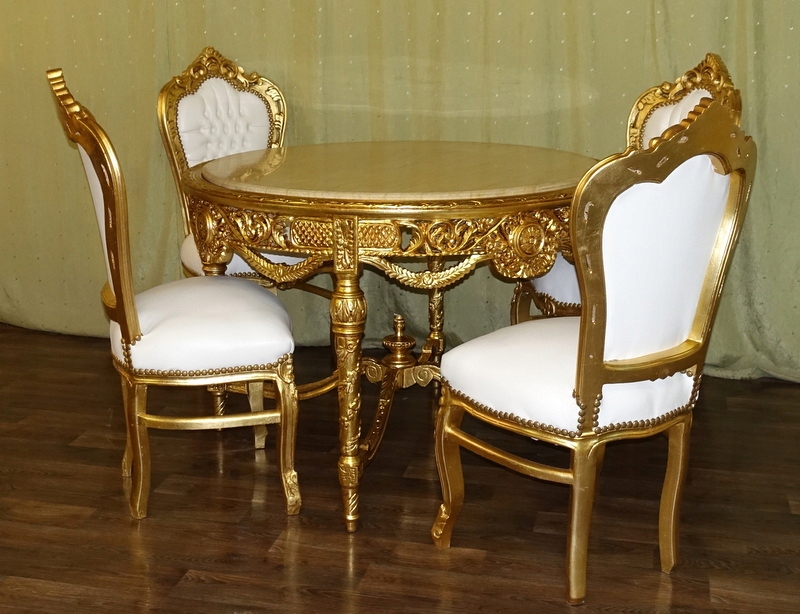 Столовий набір Baroque Gold 100% дерево Мармурова стільниця 120 см + 4 стільці