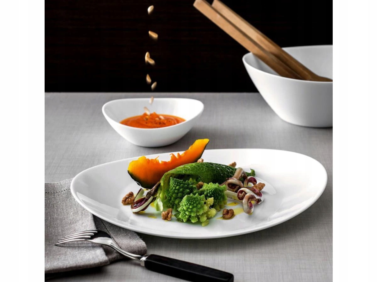 Обеденный сервиз «Прометео» Бормиоли Рокко. Обеденный сервиз на 4 персоны, 12 предметов. Белые тарелки овальной формы, украшенные снаружи волнистым узором. Набор посуды, на которой можно подавать различные виды блюд: основные блюда, супы или десерты.